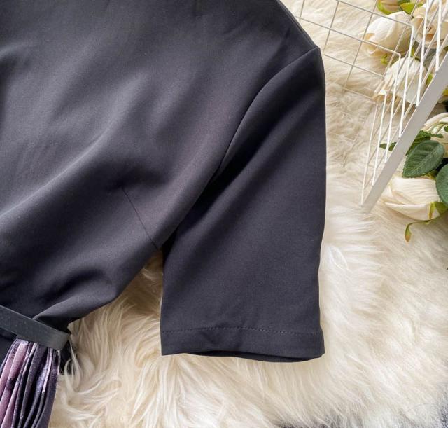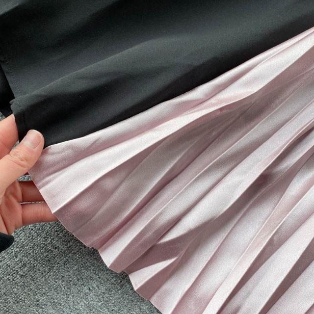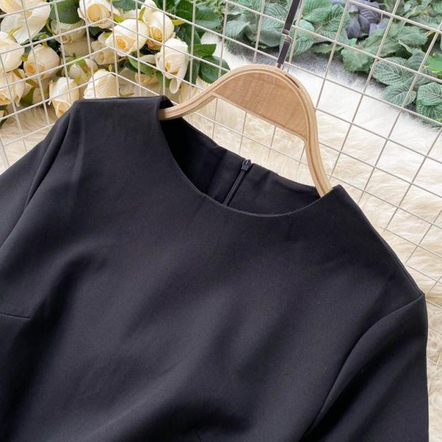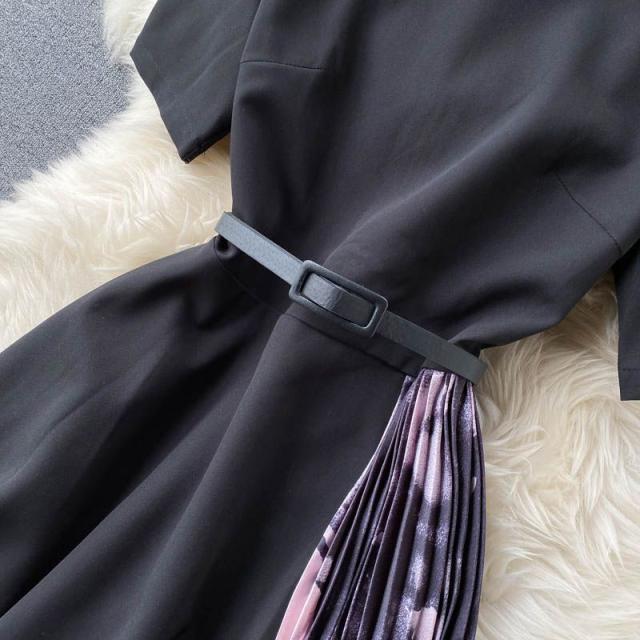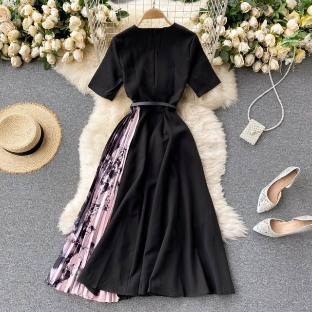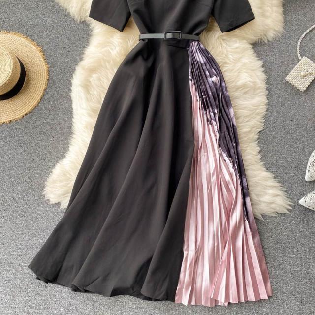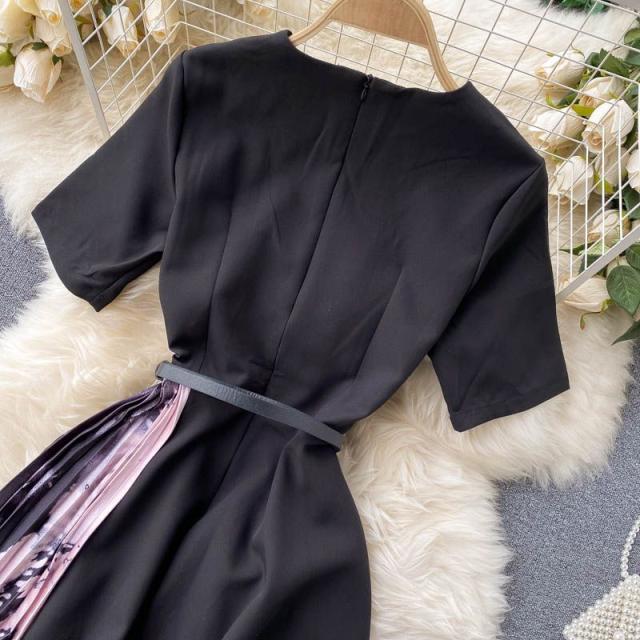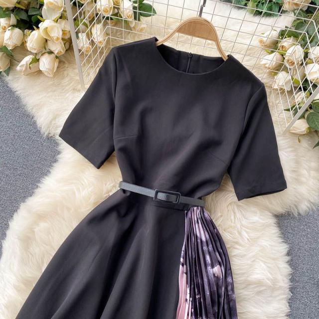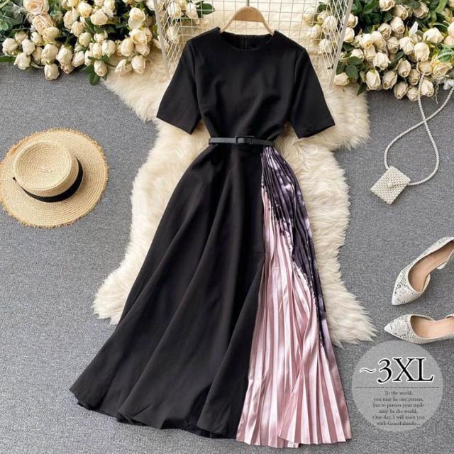 ワンピース ラウンドネック ウエストマーク ファスナー プリーツ 清楚スタイル 母親 学校行事 女子旅 ミセス 可愛い リモート 休日 /[pii76]