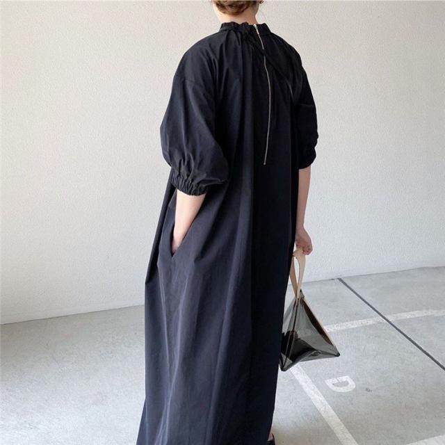 ワンピース レディース マキシワンピース 無地 ゆったり Aライン 丸首 ロングワンピース きれいめ 可愛 リゾート 黒 ネイビー