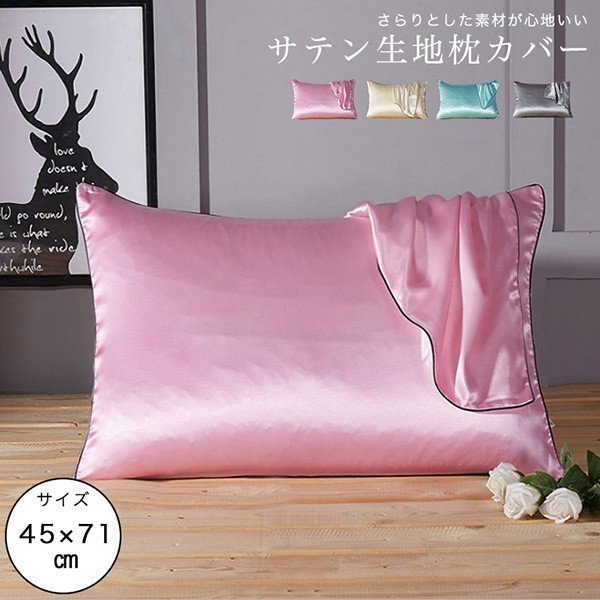 枕カバー ピローカバー 枕 カバー サテン生地 さらさら 触り心地抜群 光沢感 柔らかい サラサラ 快適 しわになりにくい 速乾性 サテンカバー 全4色 オシャ