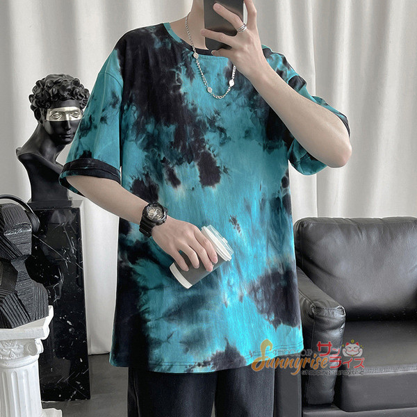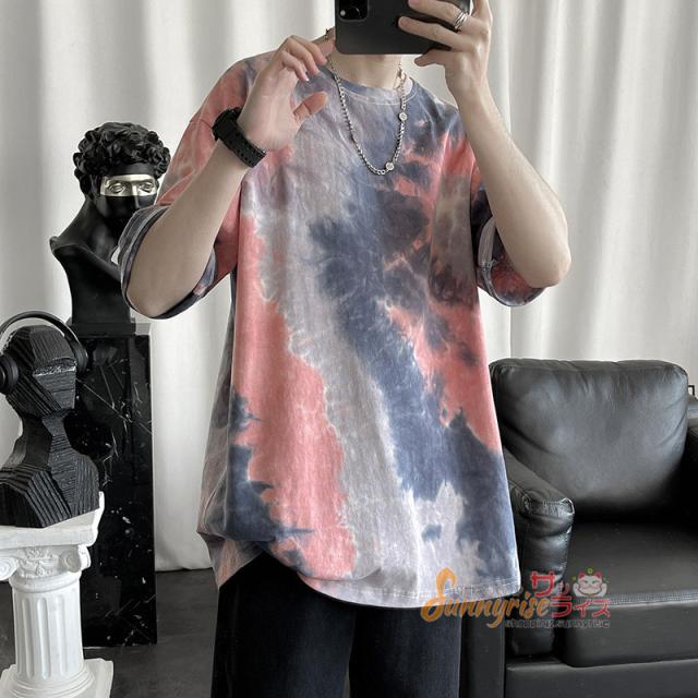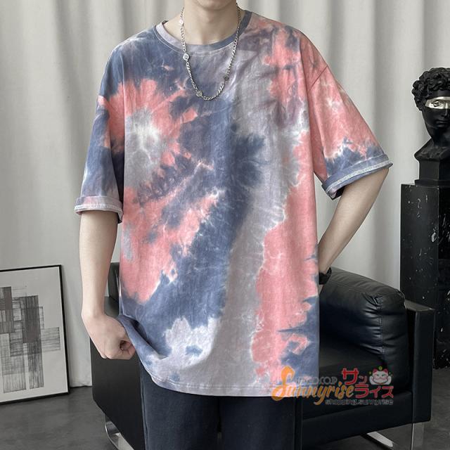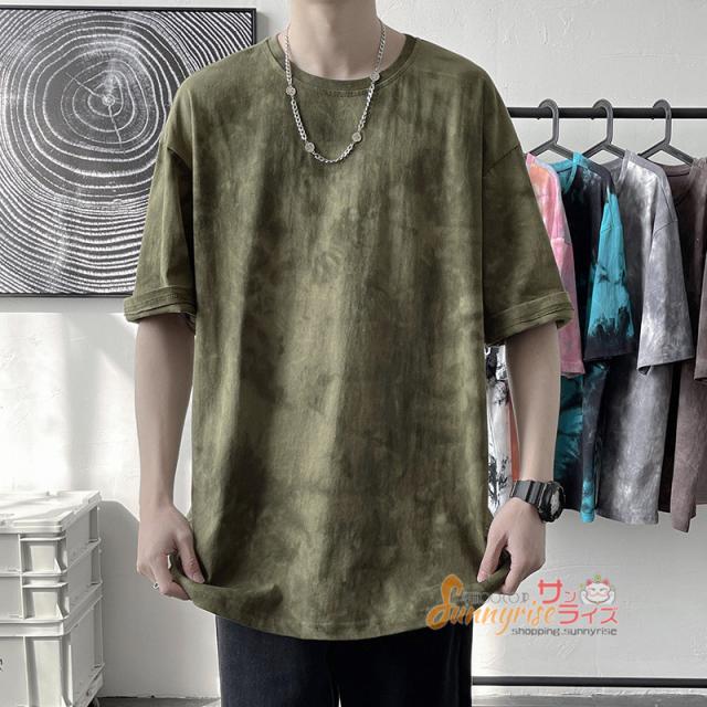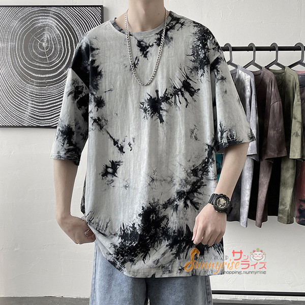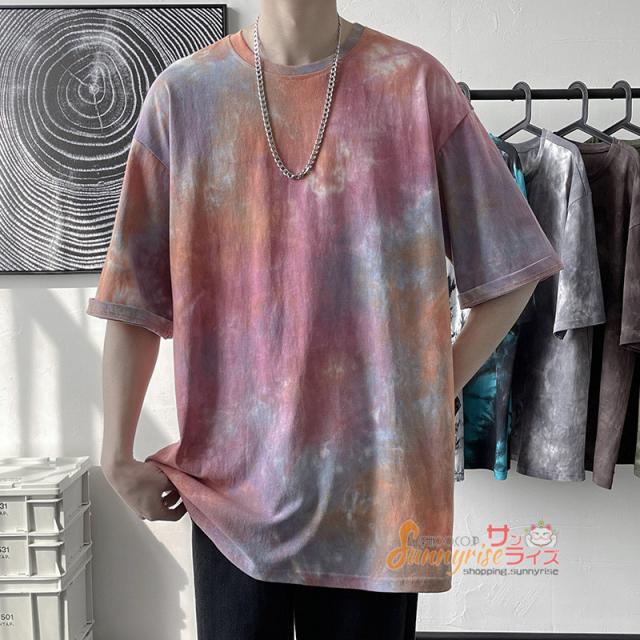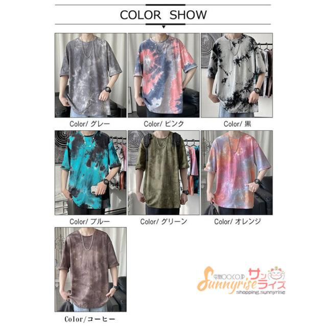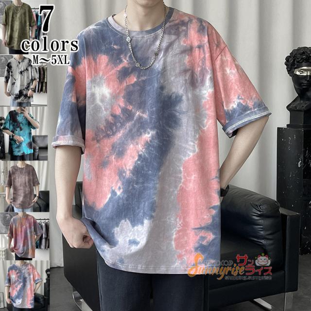 Tシャツ メンズ 五分袖Tシャツ半袖 Tシャツ トップス 夏物タイダイTシャツクルーネック おしゃれ カジュアルTシャツ春 夏 新作