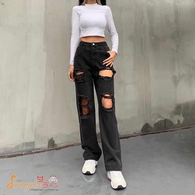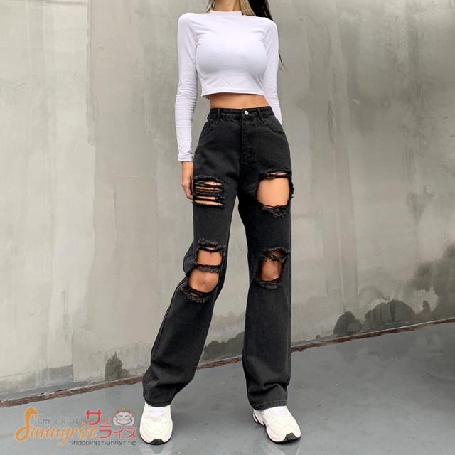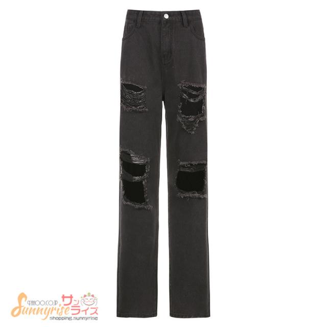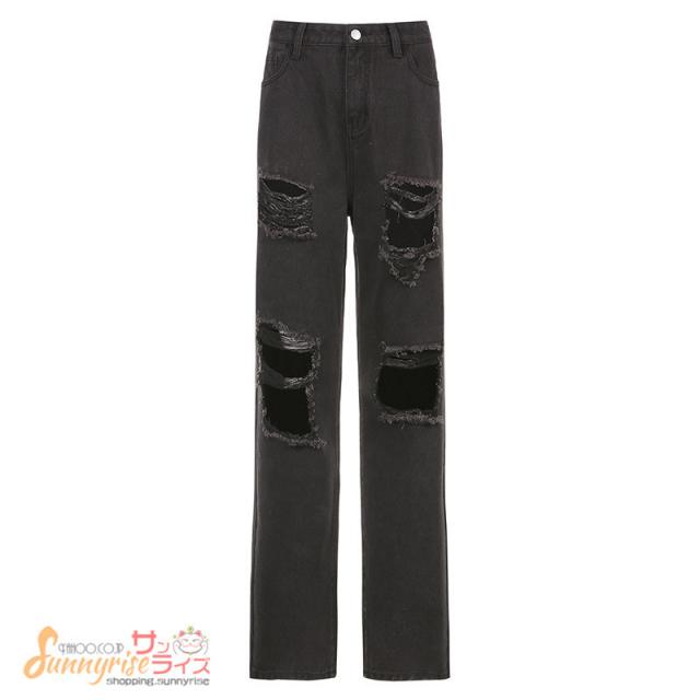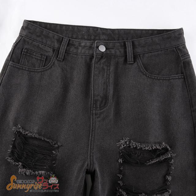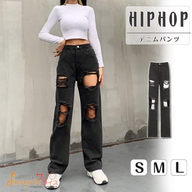 デニムパンツ ダンス衣装 キッズ レディース デニムパンツ HIPHOP ヒップホップ ダメージ加工 個性的 服 原宿系ジュニア オシャレ