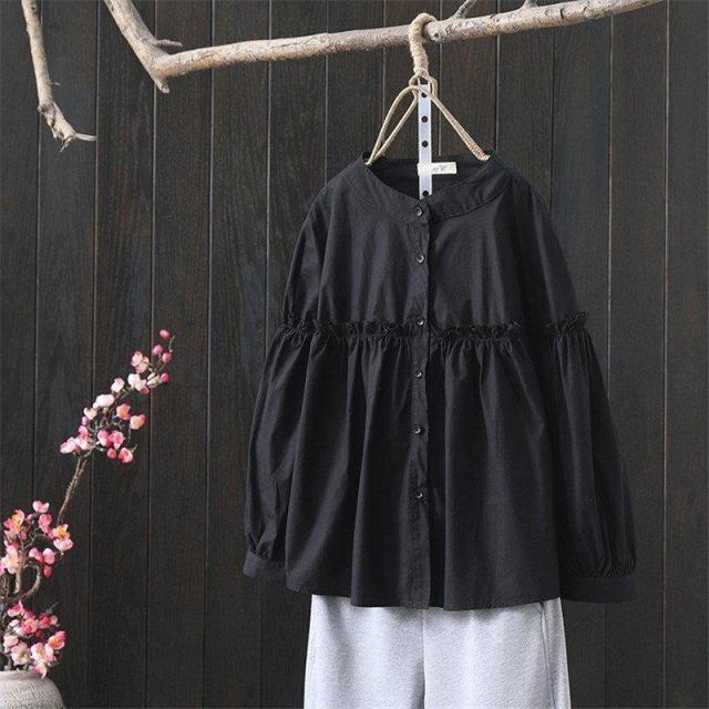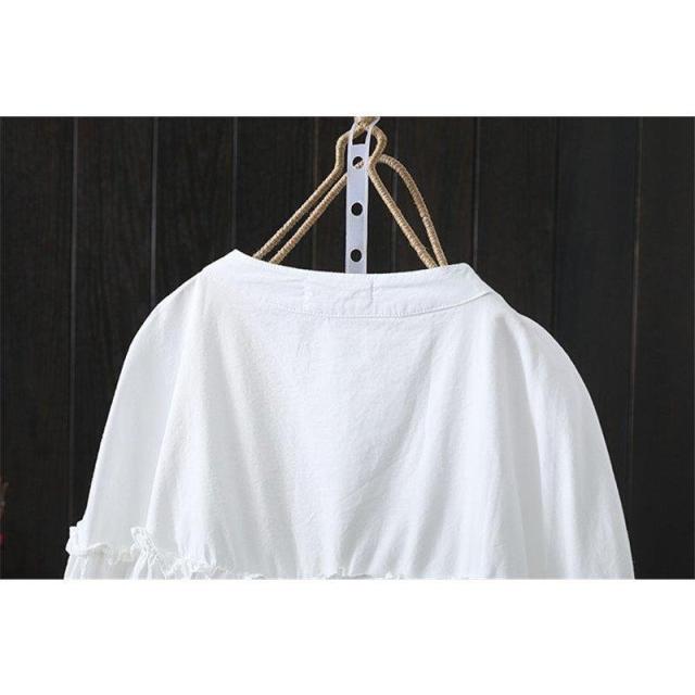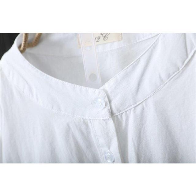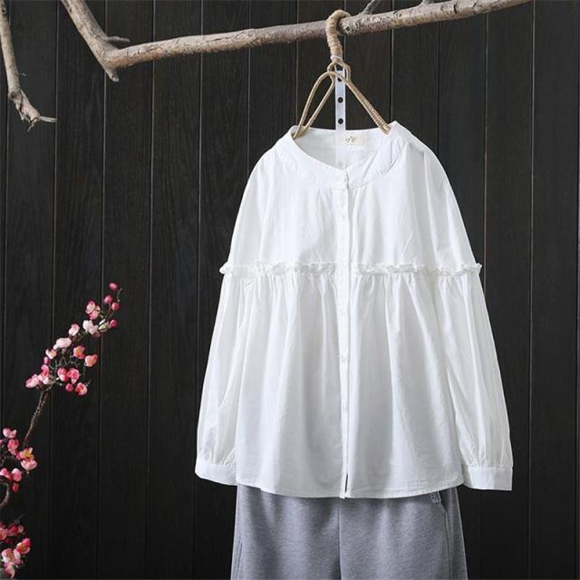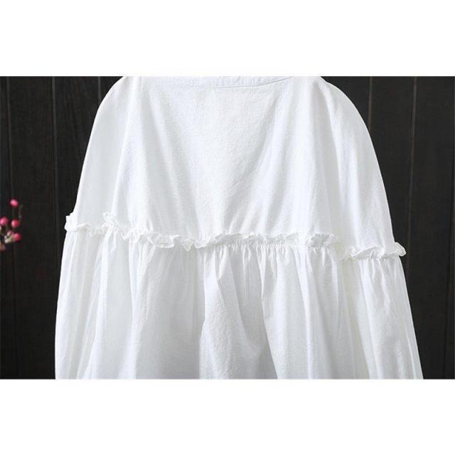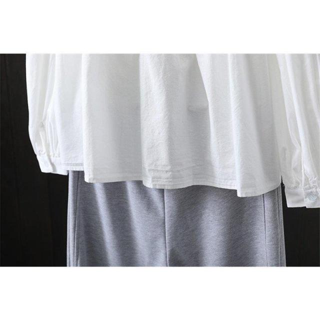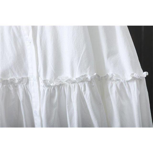 シャツ レディース トップス ブラウス 春 ホワイト 綿 コットン ホワイトシャツ 白シャツ 夏 フリル 長袖 無地 ゆったり 白 体型カバー 着やせ