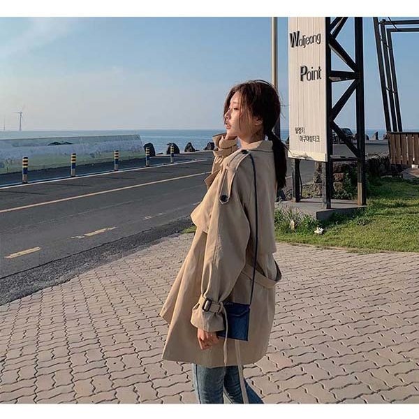 トレンチコート ミディアムコート スプリングコート 春コート Pコート ゆったり ラグランスリーブ レディース 秋コート