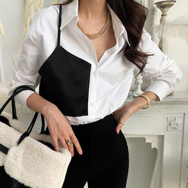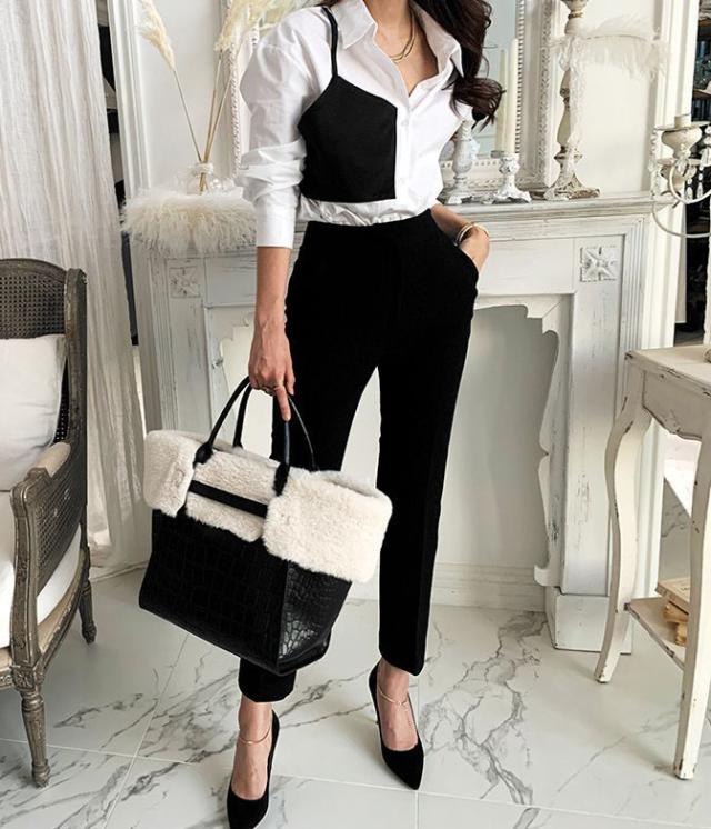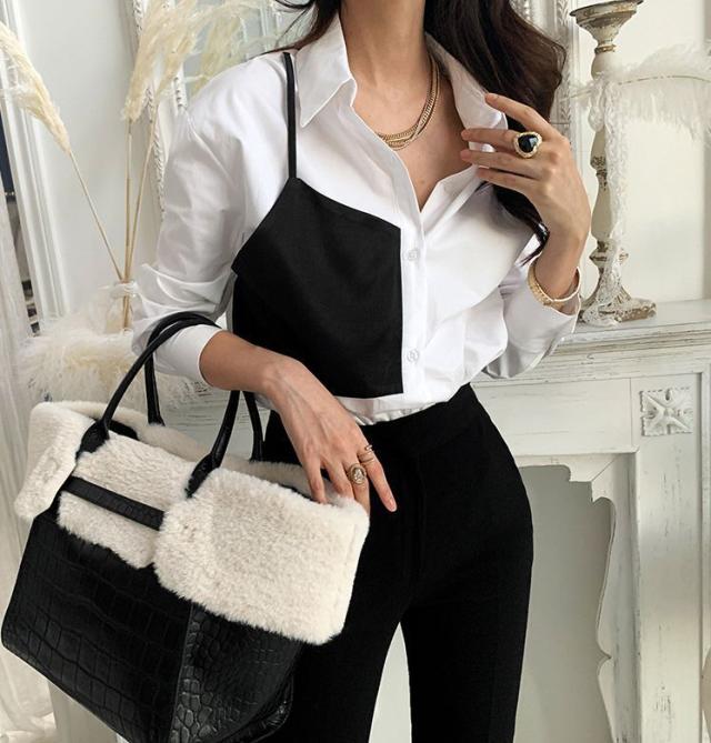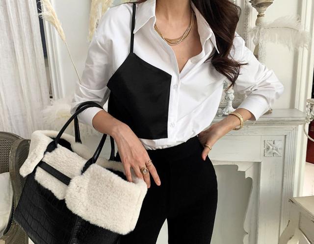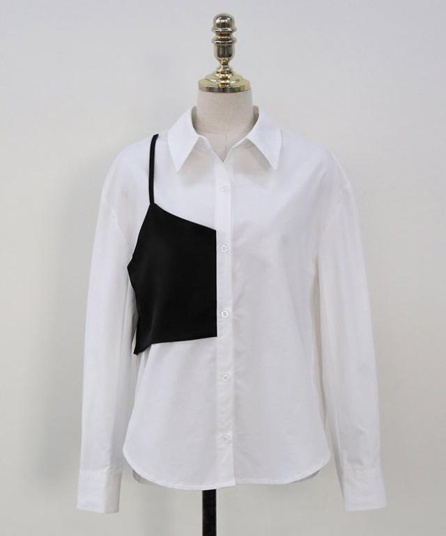 シャツ トップス 襟付き フロントボタン ツートン 個性的 着やせ 食事会 きれいめ 清楚 休日スタイル かわいい 可愛い お出かけ デート /[pio85]