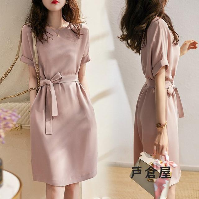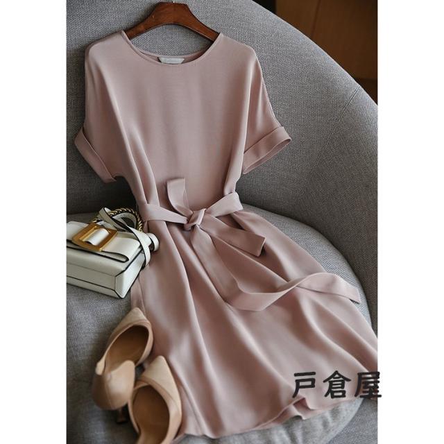 ワンピース レディース 40代 きれいめ 膝丈ワンピース 春夏新作 半袖ワンピース 無地 ひざ丈スカートオシャレ韓国風 大人 結婚式ドレス ゆったり シンプル