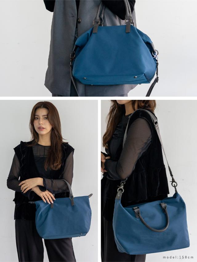 また、ショルダーベルトを付けたままトートで持つと、 違ったフォルムを楽しむことができます。