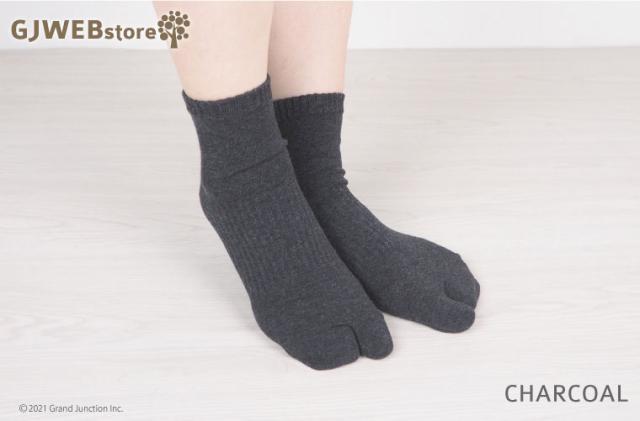 ■つま先・かかと部分と甲部分とで織り方を変えているので、足へより快適にフィットする足袋ソックスです。こちらはシーズンレスでお使いいただける綿混タイプです。