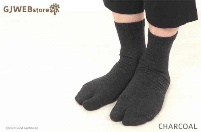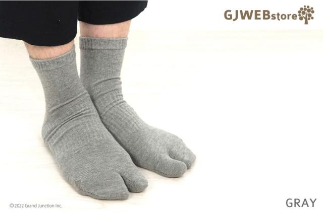■足指が快適にフィットする足袋型ソックスのメンズクルー丈タイプです。つま先・かかと部分と甲部分とで織り方を変えているので、足全体にフィットする仕様となっています。シーズンレスでお使いいただける綿混タイプです。