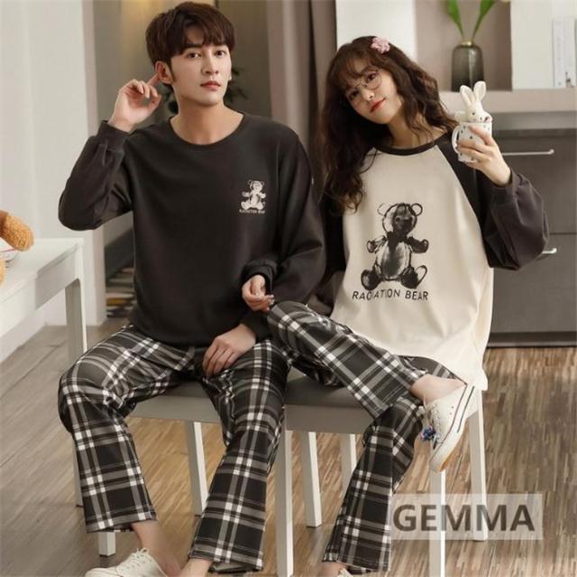 パジャマ ルームウェア チェック柄 ペア カップル 春秋 部屋着 セットアップ 格子縞 お揃い 綿 パジャマ ペアルック コットン プレゼント 記念日
