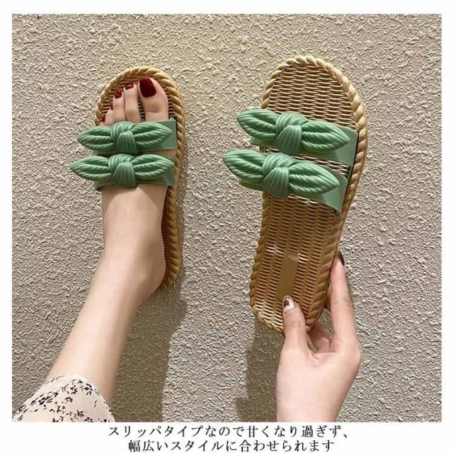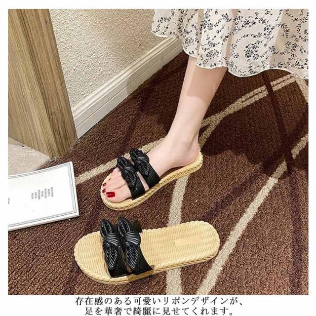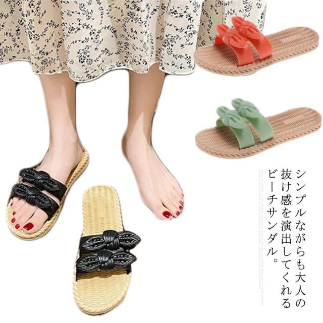 スリッパ ルームシューズ ビーチサンダル 軽量 室内用 春夏用 レディース 滑り止め リボン飾り 通気性 静音 疲れにくい ソフト 履きやすい 快適 送料無料