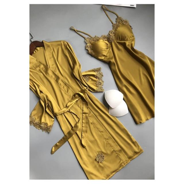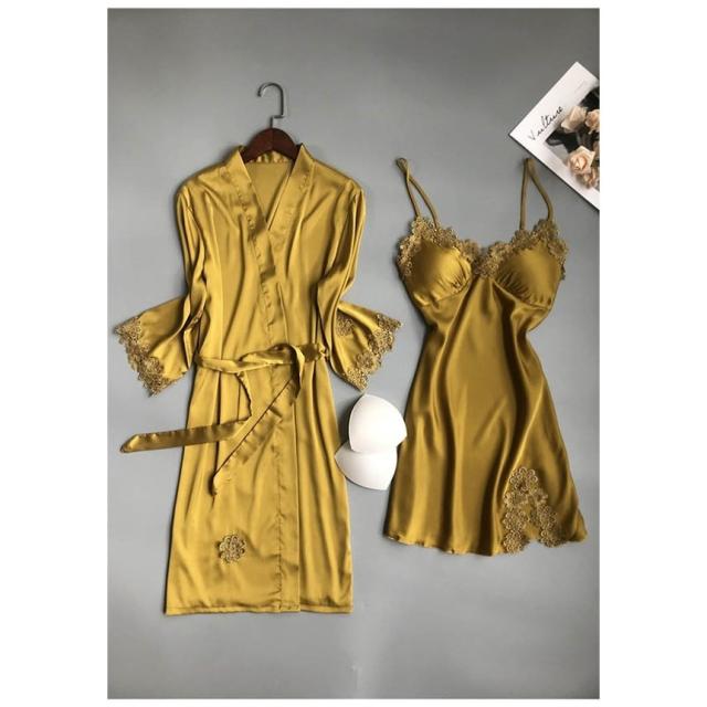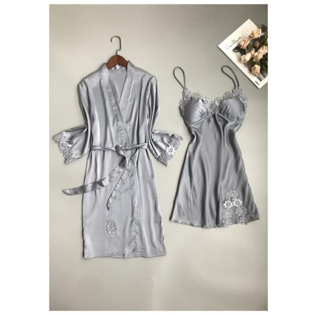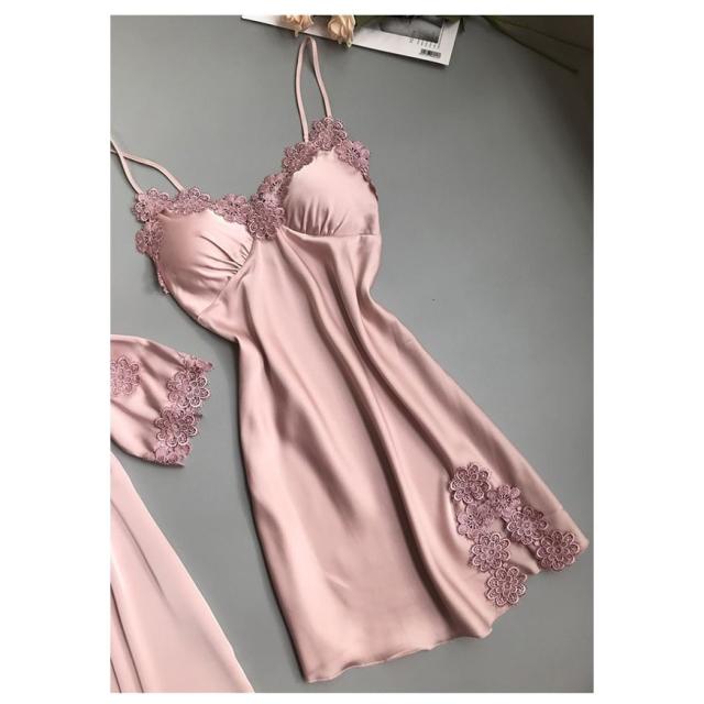 ベビードール パッド付き ナイトガウン キャミソール セット アイスシルク 涼しげ レース セクシー レディース パジャマ ルームウェア 春 夏