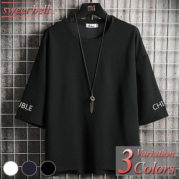 カットソー メンズ 五分袖 Tシャツ 春 夏 七分袖 半袖 パーカー vネック 大きいサイズ おしゃれ 白 黒 ホワイト ブラック アメカジ ロゴT ラグラン プリント