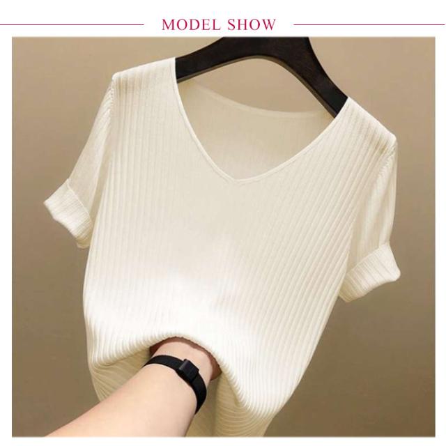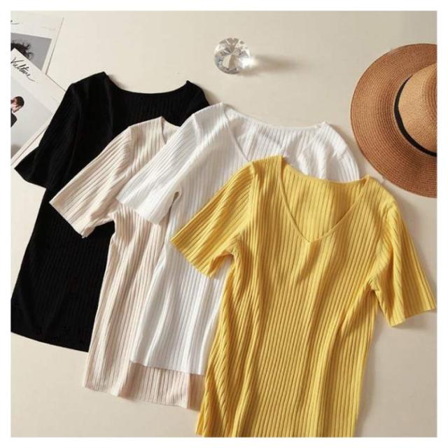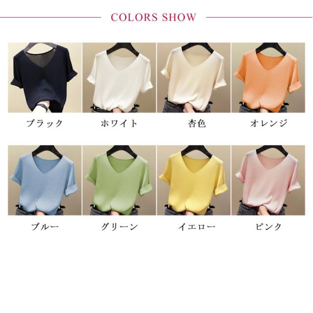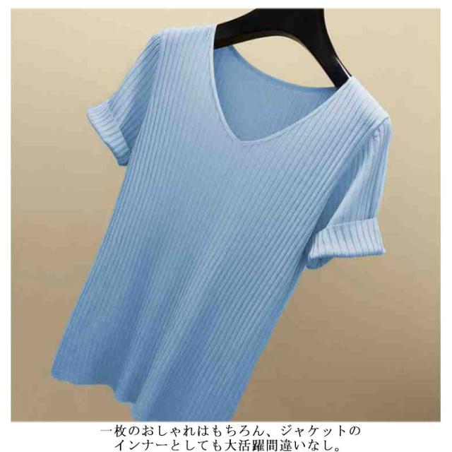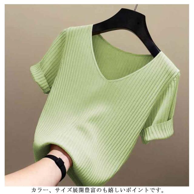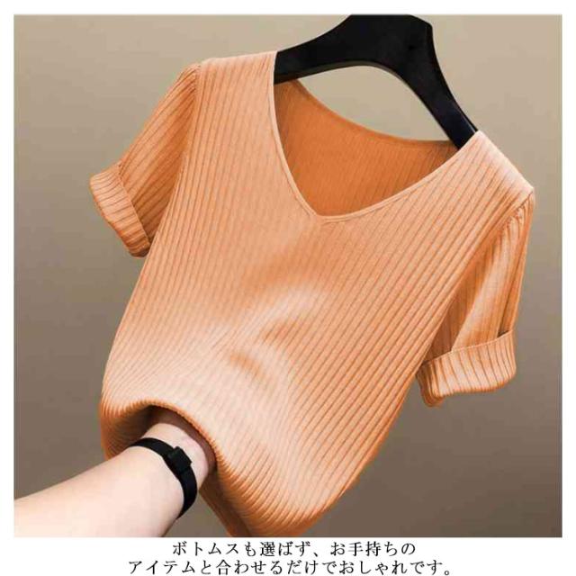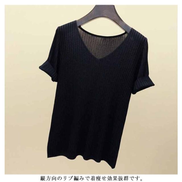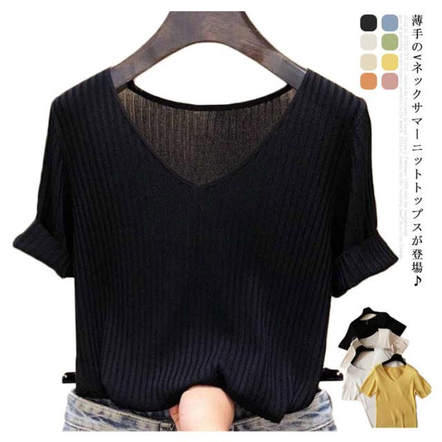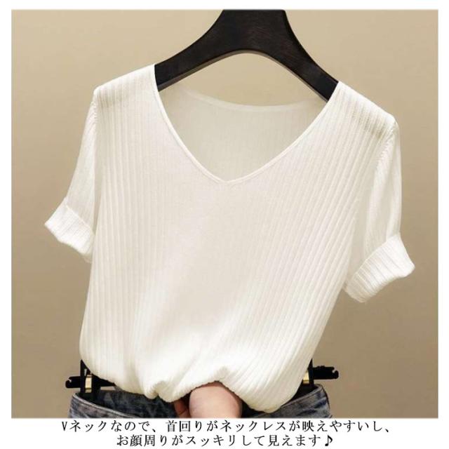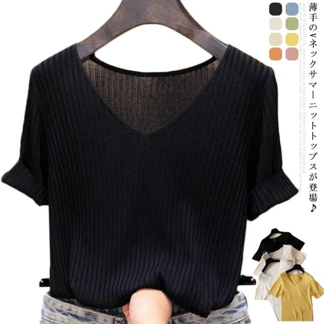 ニットトップス サマーニット 半袖 レディース 半袖ニット 半袖tシャツ トップス サマー ニット リブ tシャツ Vネック 薄手 シンプル 無地 春 夏 おしゃれ 送料無料 S M L XL 2XL