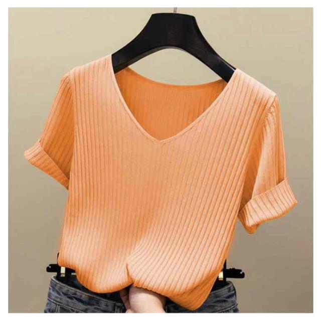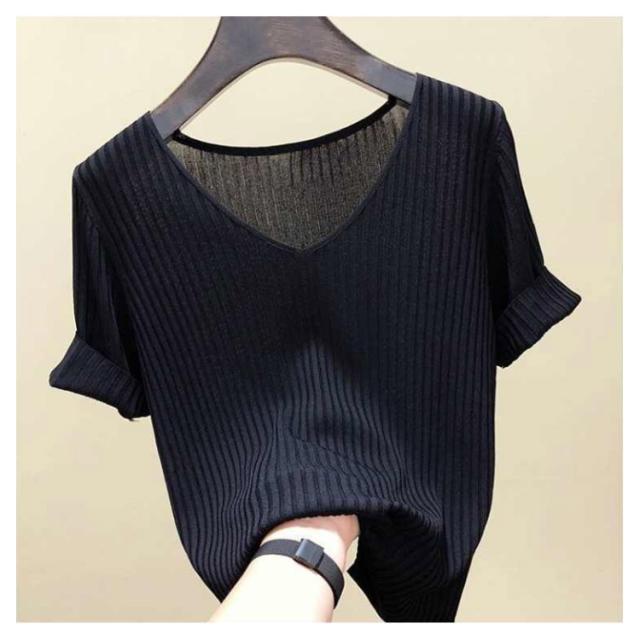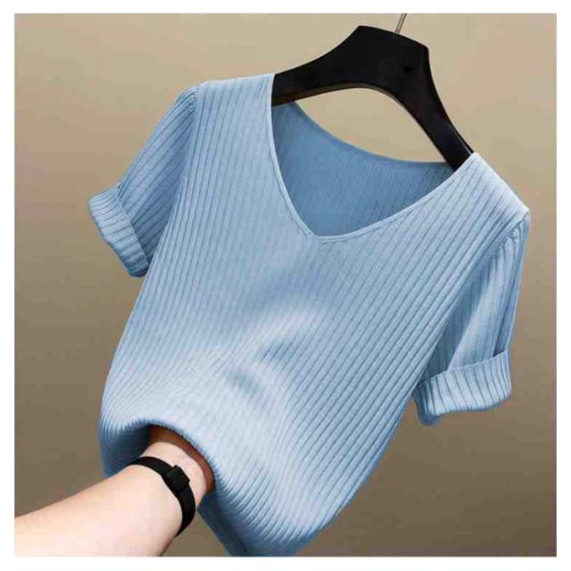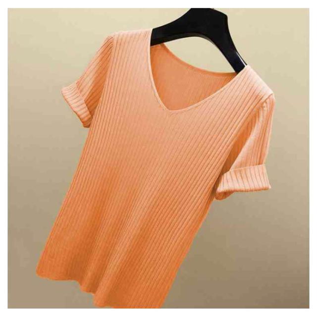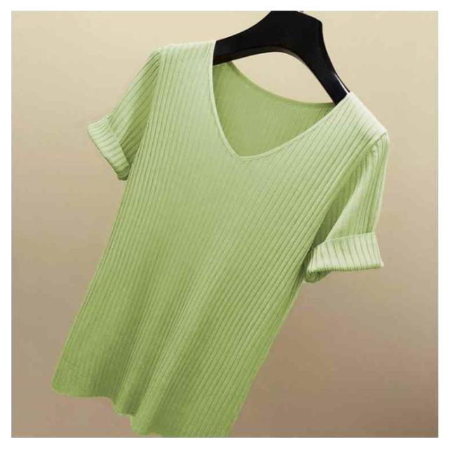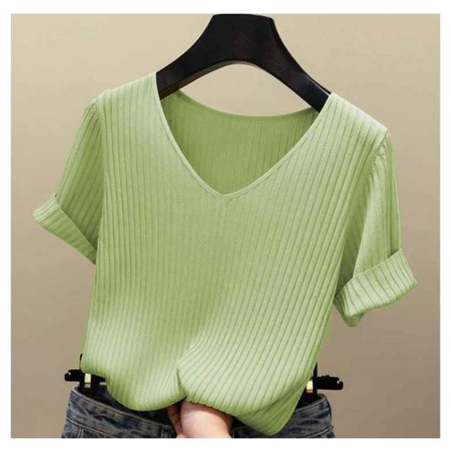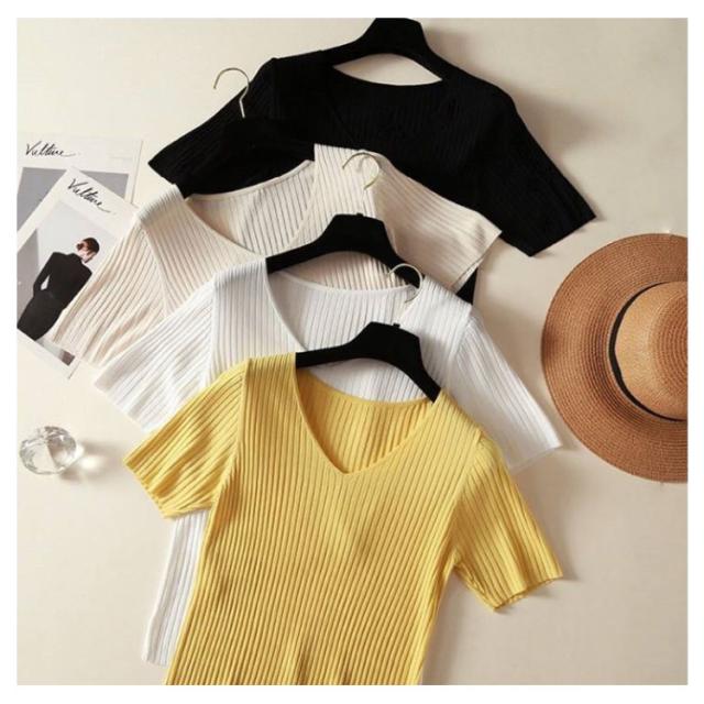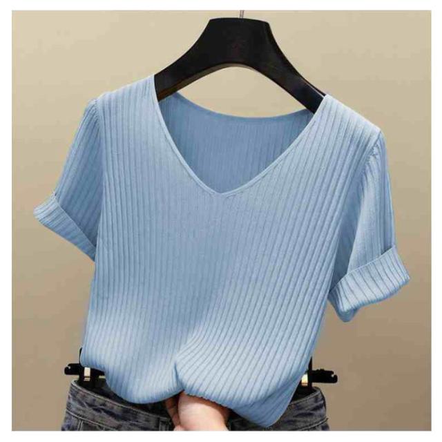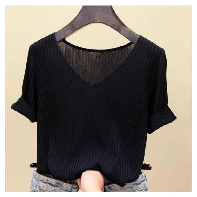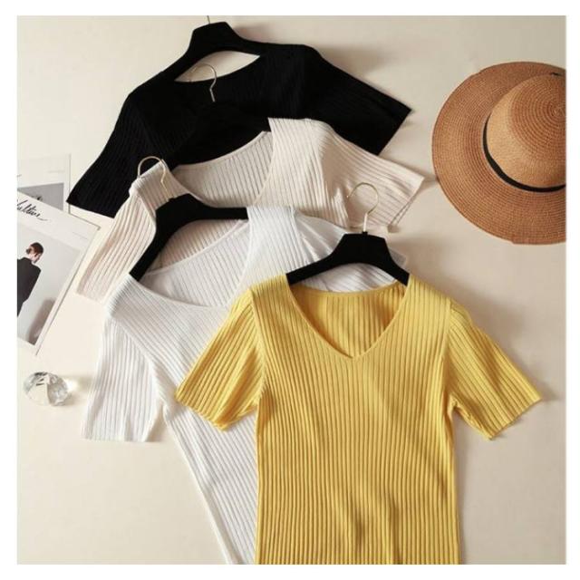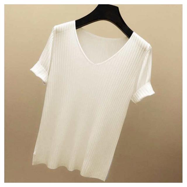 ニットトップス サマーニット 半袖 レディース 半袖ニット 半袖tシャツ トップス サマー ニット リブ tシャツ Vネック 薄手 シンプル 無地 春 夏 おしゃれ 送料無料 S M L XL 2XL