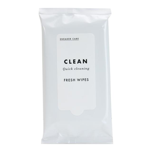 スニーカーの気になる汚れをサッとオフする携帯用クリーニングシートです。汚れ落とし効果に加え、防水・防汚効果も与えます。●使用方法1.表面についているフラップを開けて1枚ずつ取り出してお使いください。2.汚れた部分を拭いてください。汚れがひどい場合は面を替えながら繰り返しご使用ください。3.約半日で防水効果がでます。(汚れが付きにくくなります)4.使用後は乾燥を防ぐため、必ずフラップをしっかりと閉じてください。●使用上の注意●・用途以外には使用できません。・起毛革・スエード・ヌメ革・ヘビ・ワニ革・その他特殊な革には使用できません。・素材によってはシミや色落ちする場合もありますので目立たない所で確認してからご使用ください。・お子さまの手の届かないところに保管してください。・使用後に手などに腫れ、かゆみなどの異常が現れた場合は水でよく流した上、専門医に相談してください。・パッケージの端で手指を切ることがありますので注意してください。●寸法:150mmX200mm ●用途:合成底・コバ(ゴム・ウレタン)スムース革、合成素材●液性:弱酸性●成分:フッ素樹脂、グリコールエーテル系溶剤、水●素材:不織布