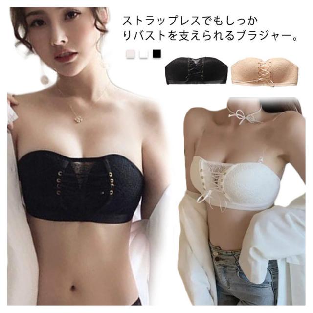 ストラップレスブラ ずれにくい 肩紐なし ブラジャー ノンワイヤーブラ オフショルダー 肩ひもなし レース ドレスインナー ドレスブラ オフショルダー ブラジャー