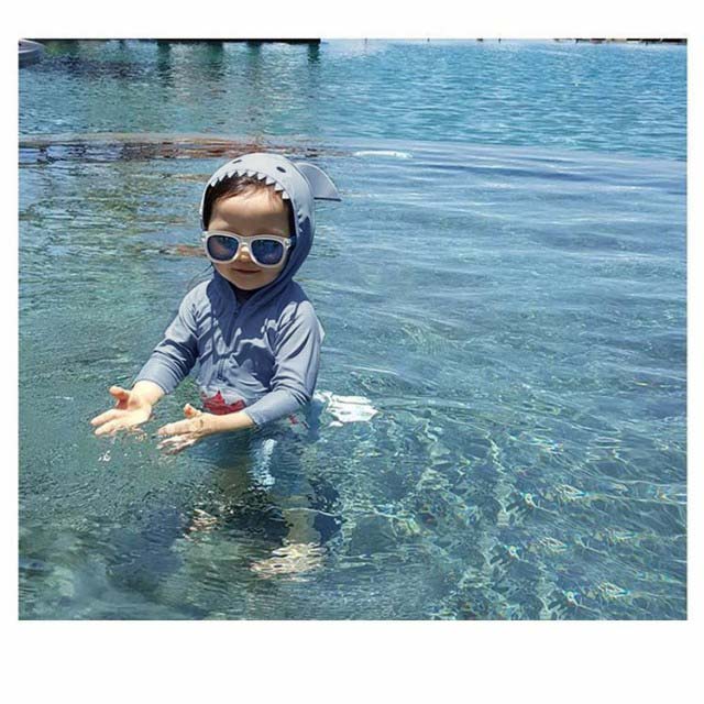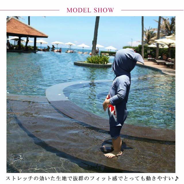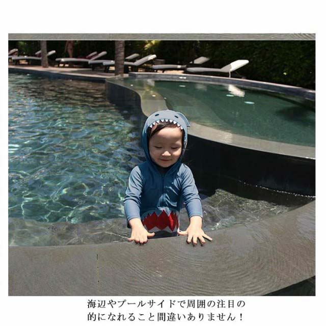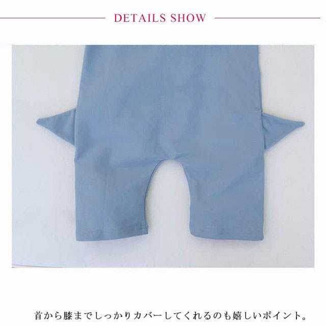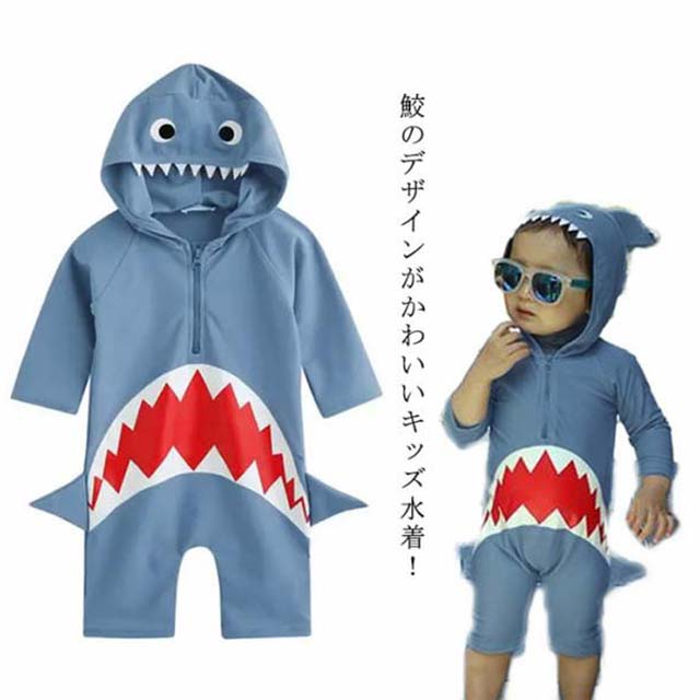 | 鮫のデザインがかわいいキッズ水着! ストレッチの効いた生地で抜群のフィット感でとっても動きやすい♪ 首から膝までしっかりカバーしてくれるのも嬉しいポイント。 海辺やプールサイドで周囲の注目の的になれること間違いありません! | |