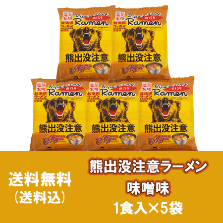 北海道 ラーメン 送料無料 藤原製麺 熊出没注意 ラーメン 味噌ラーメン / みそラーメン インスタント 袋麺 1袋×5袋 麺類 ラーメン
