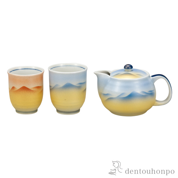 「送料無料」 くつろぎ揃 山水 夫婦湯呑・急須セット 茶こし網付き ( 退職祝い 定年 湯のみ 急須 ポット プレゼント 日本茶 九谷焼 )