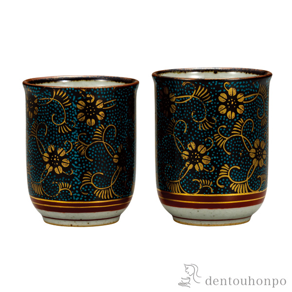 組湯呑 青粒鉄仙 ペア ( 退職祝い 定年 湯呑み 湯のみ セット 湯飲み おすすめ セット 九谷焼 結婚 出産 内祝い 引き出物 金婚式 )