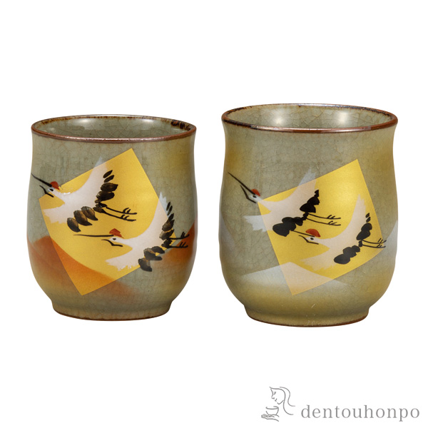 「送料無料」 組湯呑 金箔鶴 ペア ( 退職祝い 定年 湯呑み 湯のみ セット 湯飲み おすすめ セット 九谷焼 結婚 出産 内祝い 引き出物 )