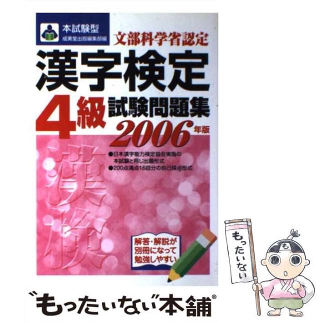 商品名:【中古】 漢字検定「4級」試験問題集 本試験型 / 成美堂出版編集部、成美堂出版株式会社 / 成美堂出版 [単行本]【メール便送料無料】