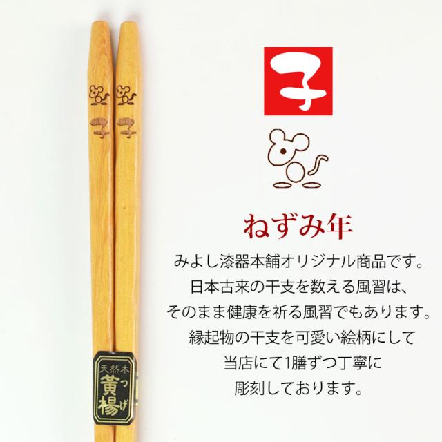 天然木製 干支箸 子(ねずみ年) お箸 おはし ネズミ 鼠 かわいい おしゃれ 縁起物 黄楊 当店オリジナル 日本国内加工品 k_name
