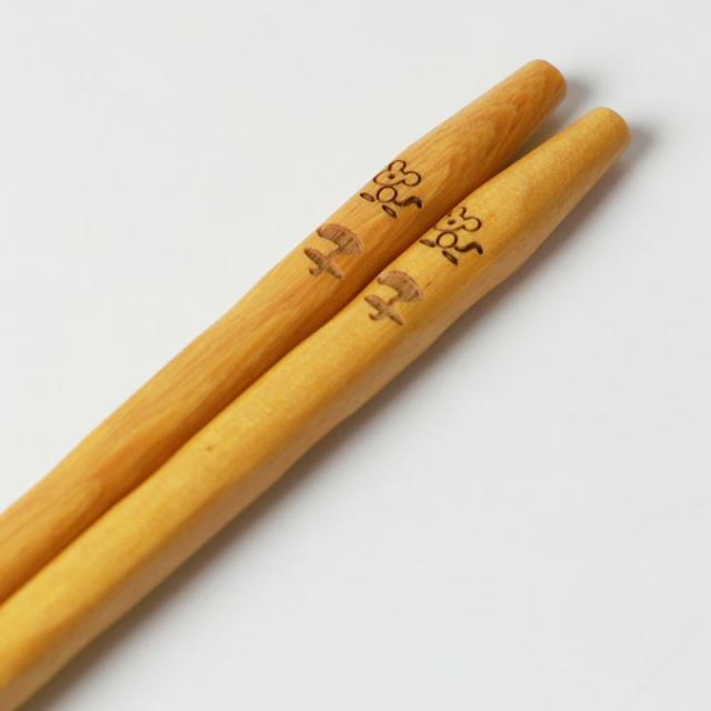 ウレタン塗装天然木製 干支箸 子(ねずみ年) お箸 おはし ネズミ 鼠 かわいい おしゃれ 縁起物 黄楊 当店オリジナル 日本国内加工品