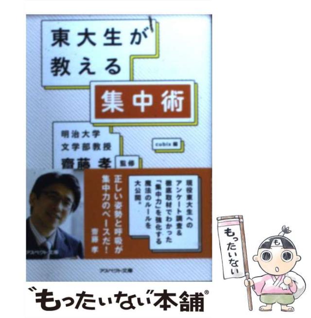 商品名:【中古】 東大生が教える集中術 (アスペクト文庫 B11-1) / cubix、齋藤孝 / アスペクト [文庫]【メール便送料無料】