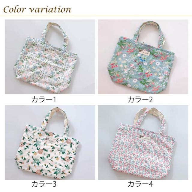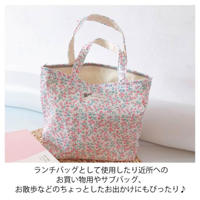 | 飽きの来ない小花柄のミニバッグ。ファスナー付きで中身をしっかりガード。ランチバッグとして使用したり近所へのお買い物用やサブバッグ、お散歩などのちょっとしたお出かけにもぴったり♪いろいろなシーンで活躍するミニバッグはギフトにもおすすめです♪ | |