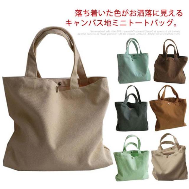 | 落ち着いた色がお洒落に見えるキャンバス地ミニトートバッグ。キャンバス素材を採用、丈夫です。ランチバッグとして使用したり近所へのお買い物用やサブバッグ、お散歩などのちょっとしたお出かけにもぴったり♪いろいろなシーンで活躍するミニバッグはギフトにもおすすめです♪ | |
