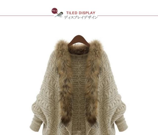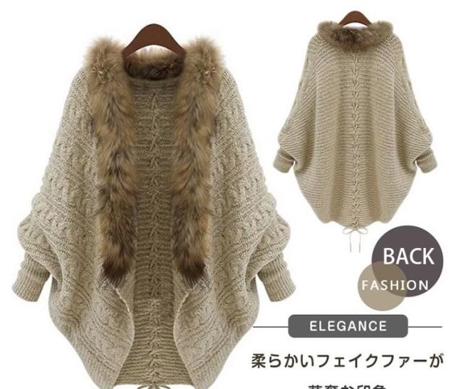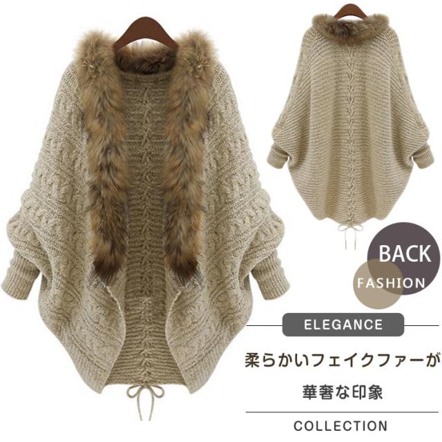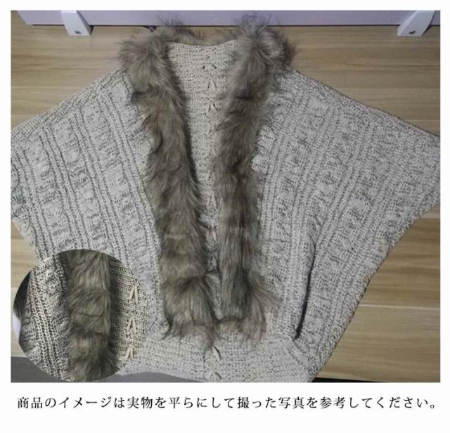ニットポンチョ ニットカーディガン ポンチョ ファー付き ケープ カーディガン ドルマンスリーブ ニット レディース ファー付きニットカ