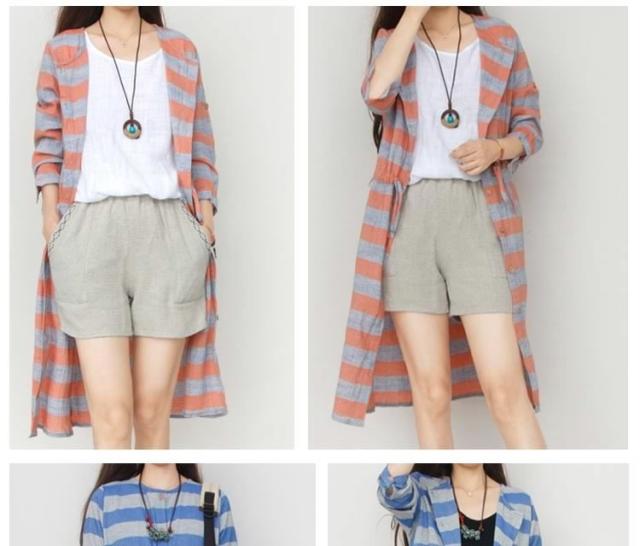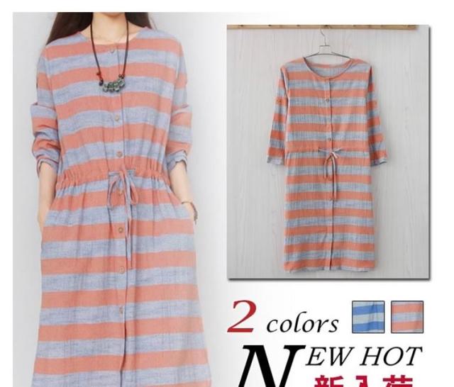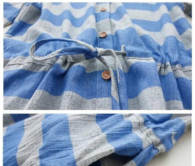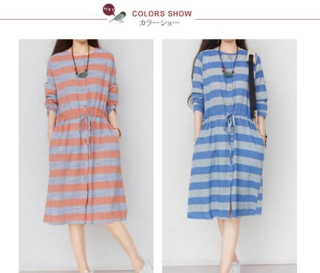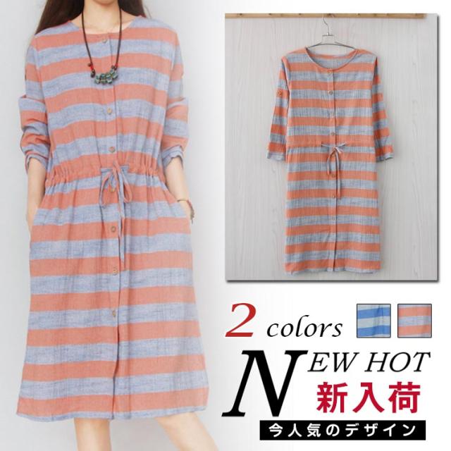 森ガール風 綿麻 シャツワンピース ボーダー柄 ワンピース リネン ワンピース エレガント レディース