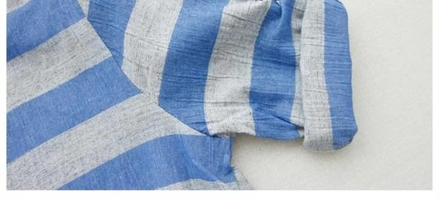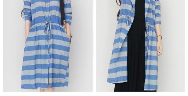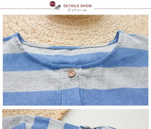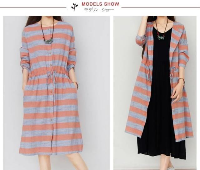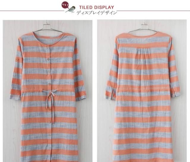森ガール風 綿麻 シャツワンピース ボーダー柄