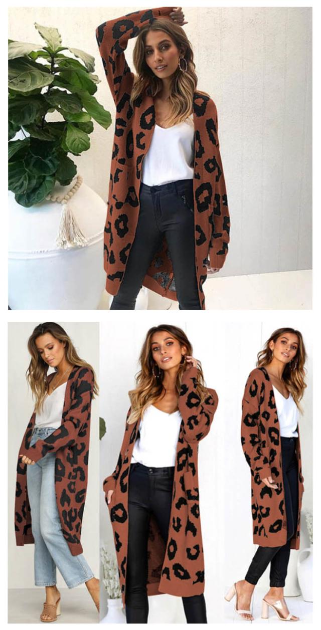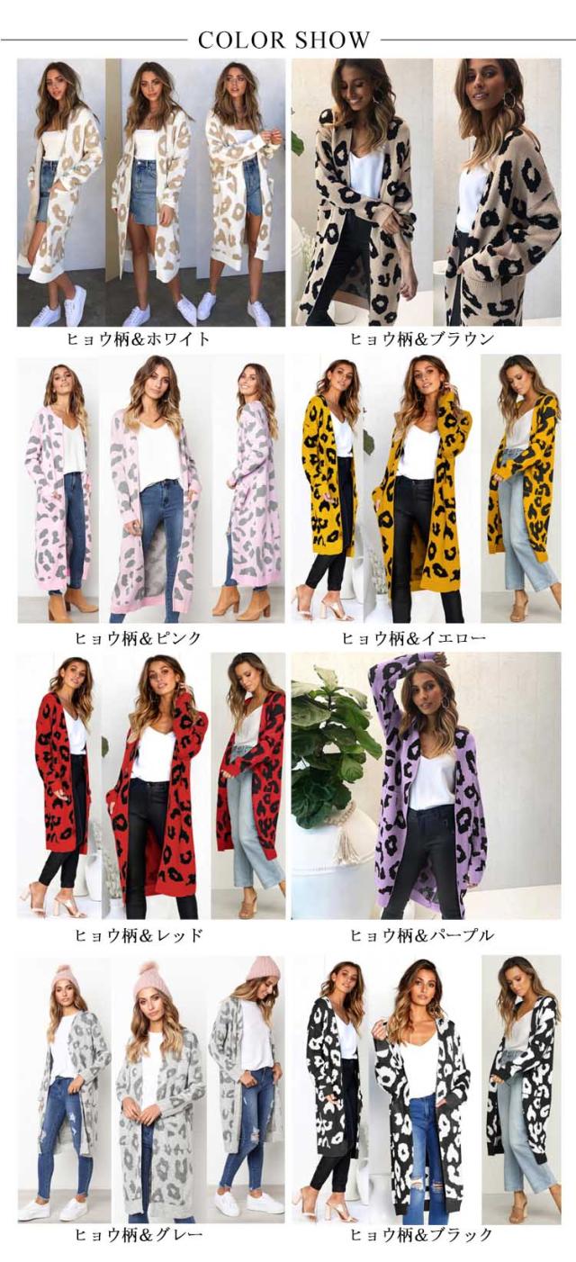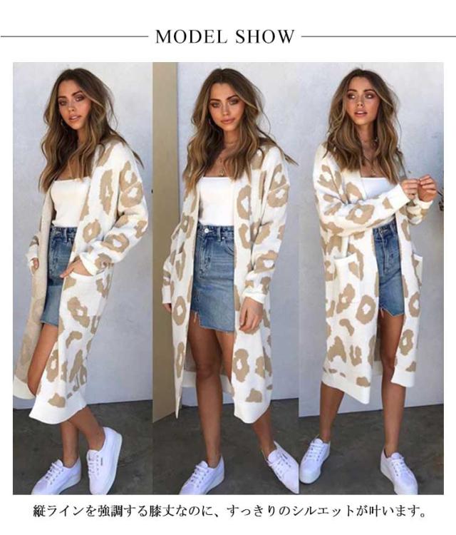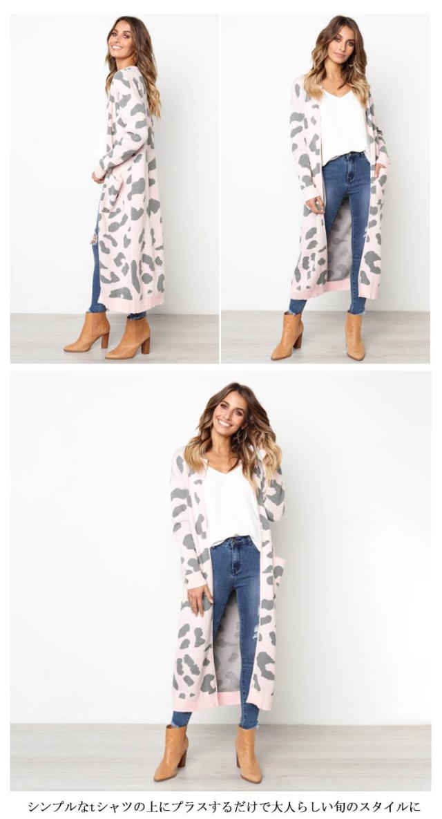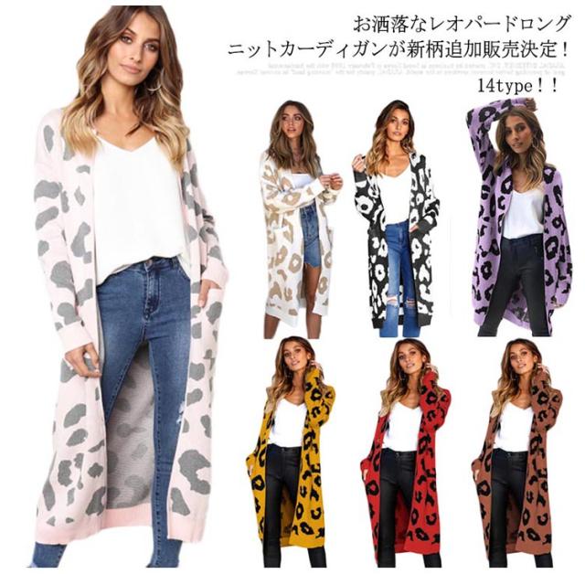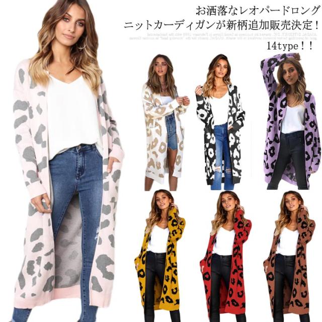 新柄追加!カーディガン ロングカーディガン ヒョウ柄 ニットカーディガン ロング丈 ロングニットカーディガン ライトアウター 羽織り 春 秋 お洒落 レディース