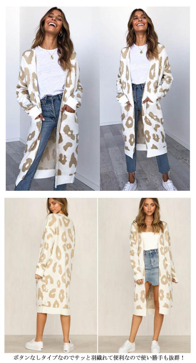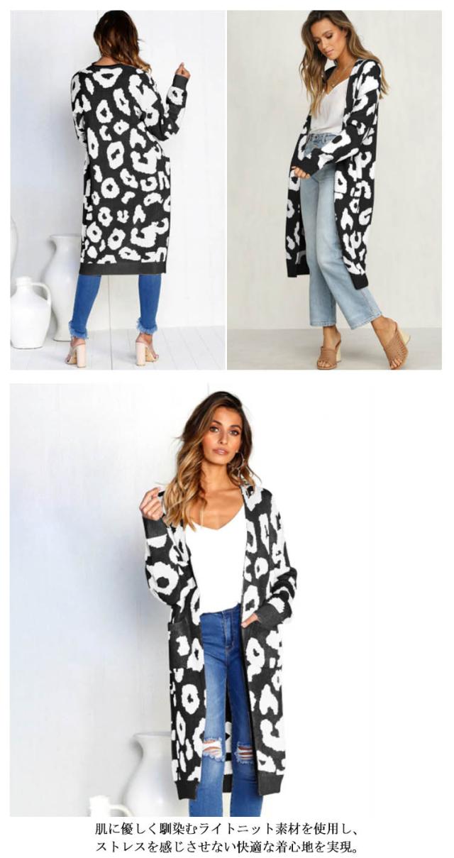 新柄追加!カーディガン ロングカーディガン ヒョウ柄 ニットカーディガン ロング丈 ロングニットカーディガン ライトアウター 羽