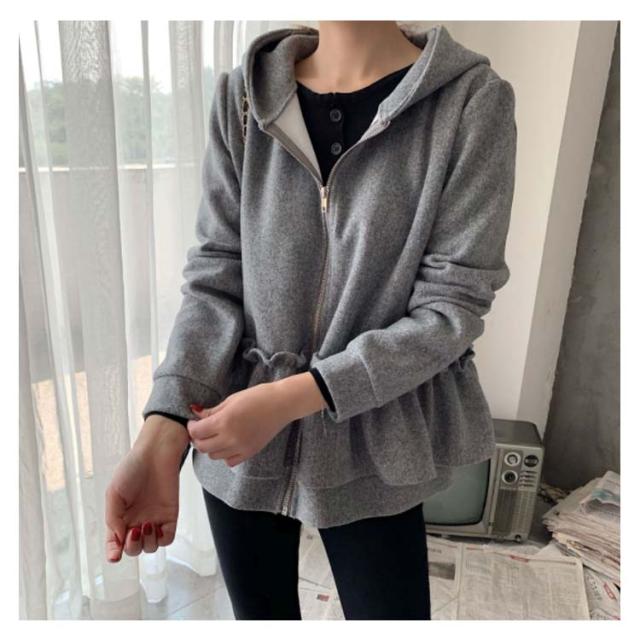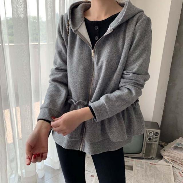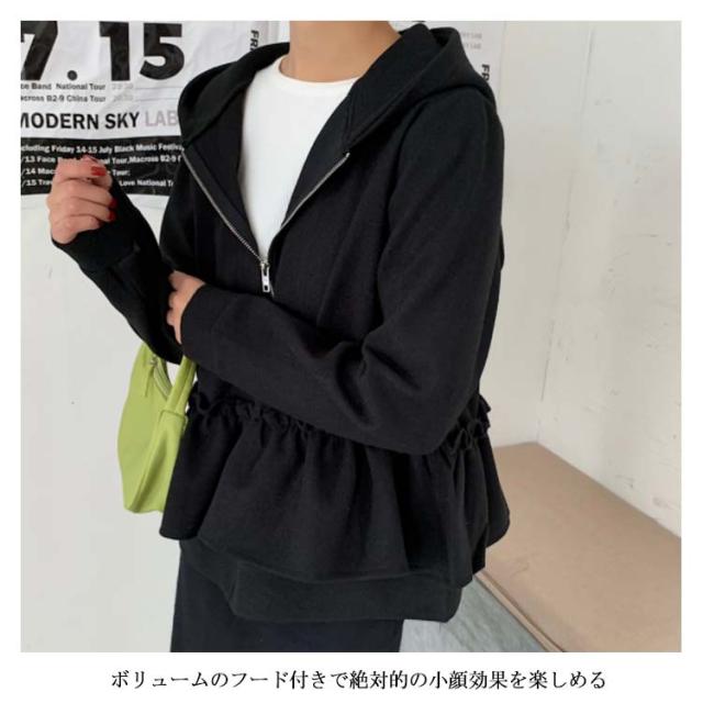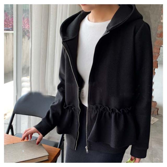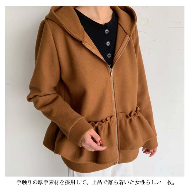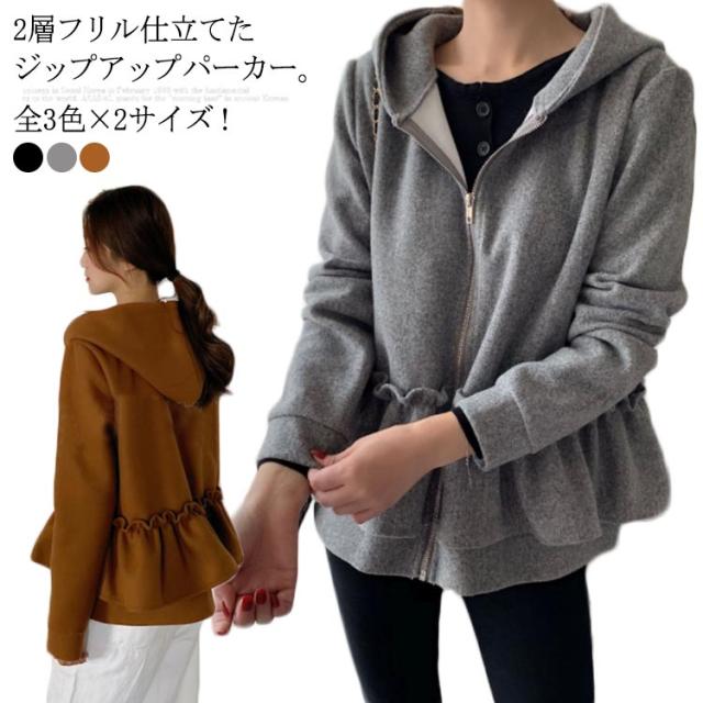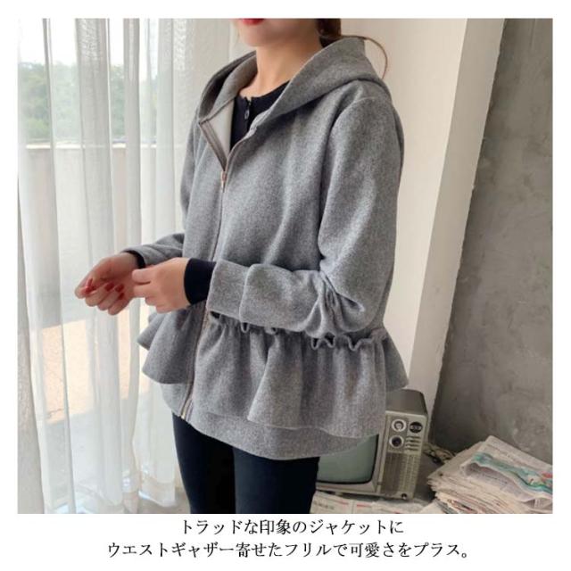 全3色×2サイズ!フリルジャケット レディース ショートコート ショートジャケット パーカー ジップアップ フード付き フリル 大人可愛い 秋冬 冬物