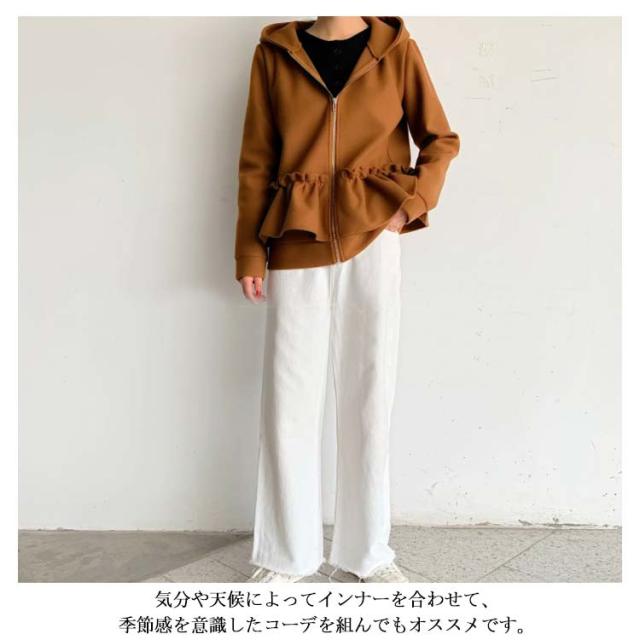 全3色×2サイズ!フリルジャケット レディース ショートコート ショートジャケット パーカー ジップアップ フード付き フリル