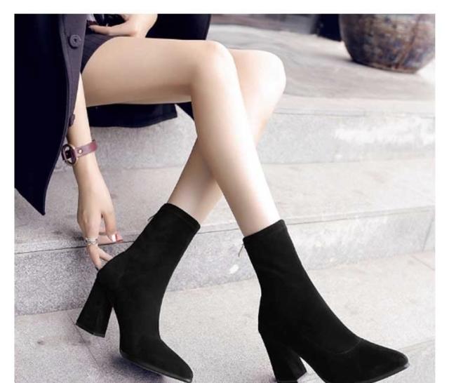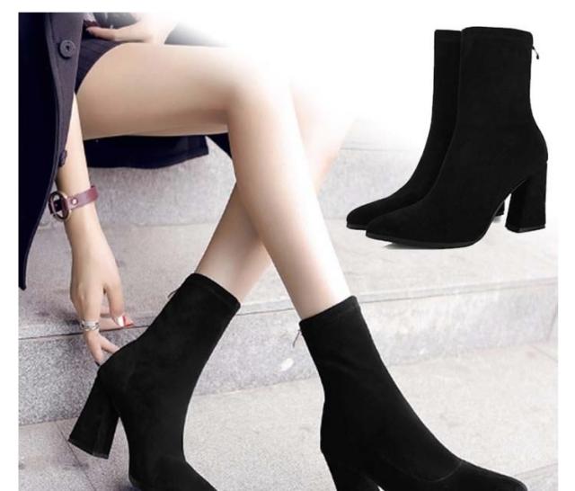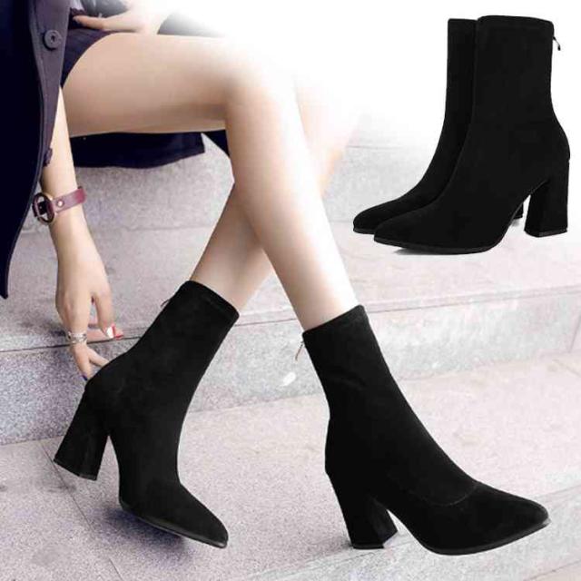 ミドルブーツ チャンキーヒール ショートブーツ ストレッチ レディース サイドゴアブーツ ハイヒール ヒールブーツ ショート丈