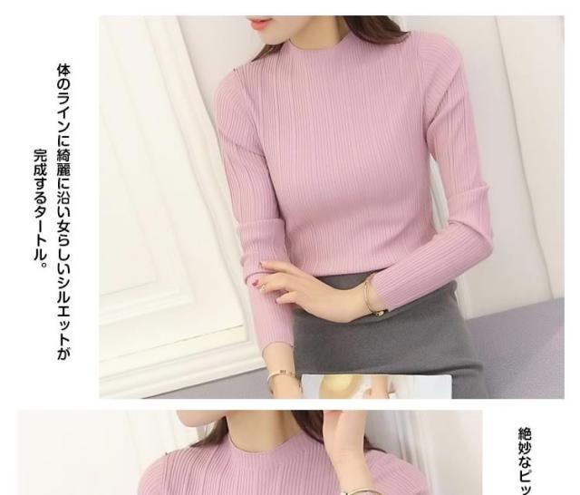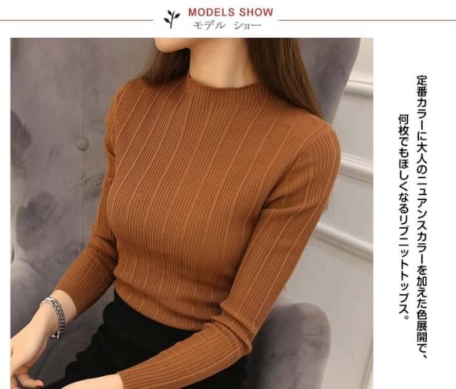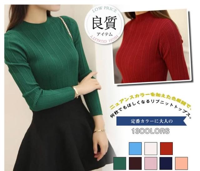 全13色!着まわし力抜群!ハイネックニット リブニット タートルニット レディース ニット ニットトップス 長袖 ニット リブ シン
