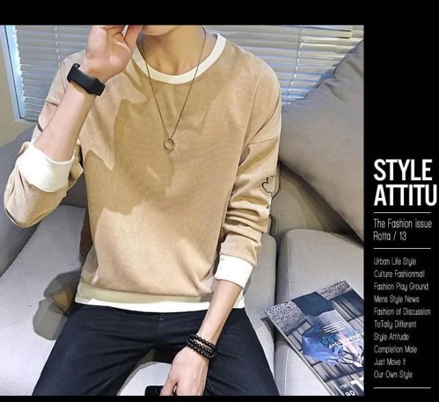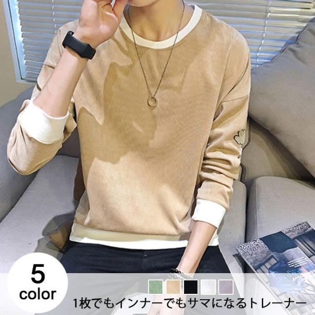 送料無料メンズトレーナープルオーバー長袖トレーナースリムトレーナー切替トレーナートップスメンズファッション秋物普段着クルーネック
