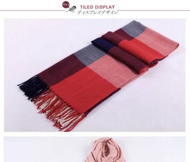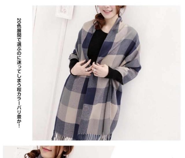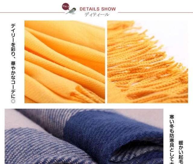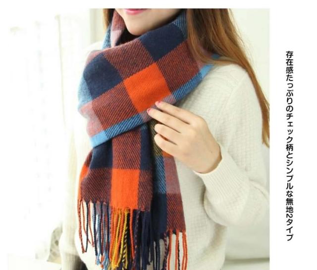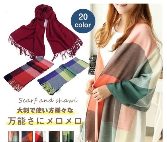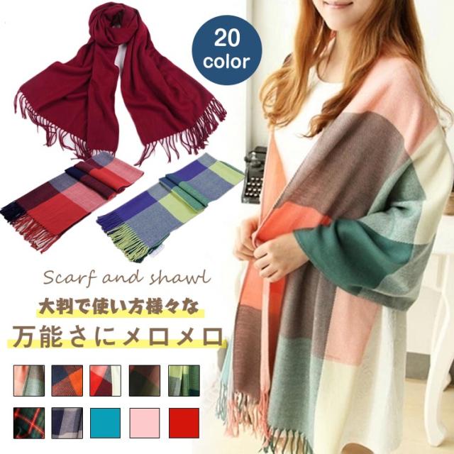 | 大判で使い方様々な万能さにメロメロ肩から羽織っても、首にまいても、膝掛けにもできる大判タイプで使い方いろいろ存在感たっぷりのチェック柄とシンプルな無地2タイプ20色展開で選ぶのに迷ってしまう程カラーバリ豊か!ボリュームをだしたり、斜め巻いたり、肩がけでも、羽織っても、自分好みの巻き方にアレンジ◎ | |