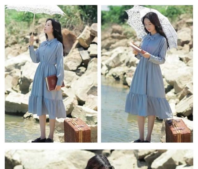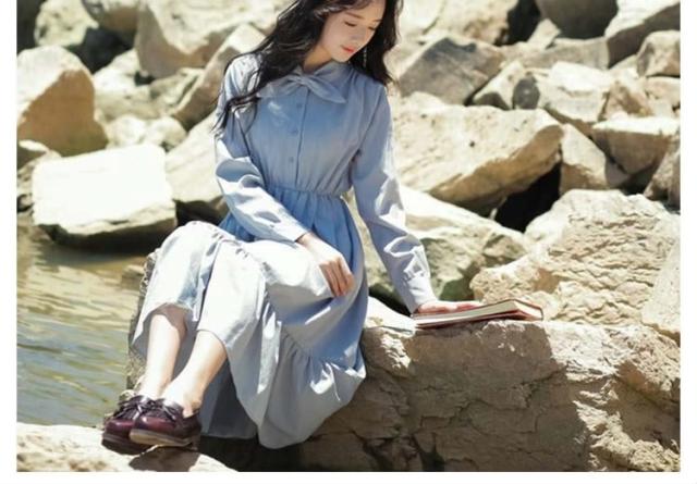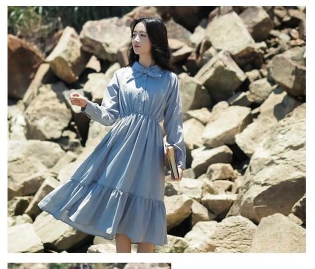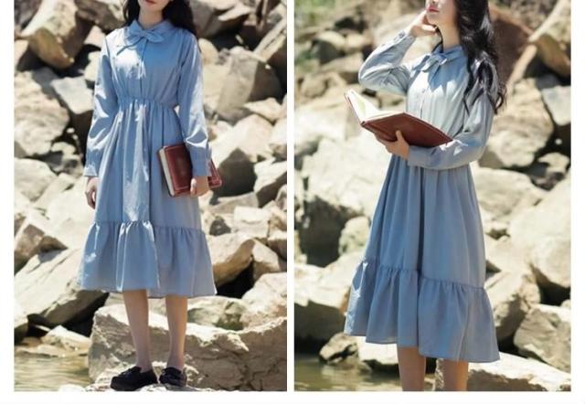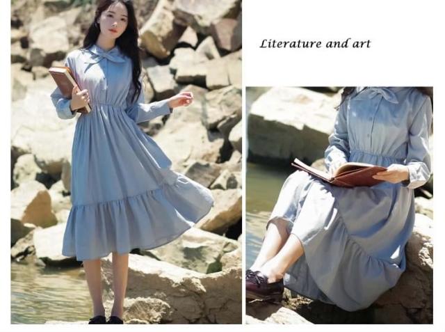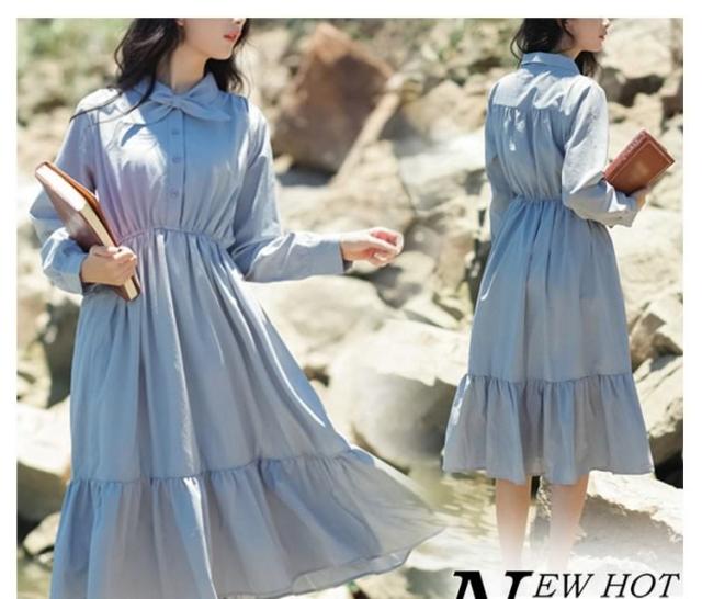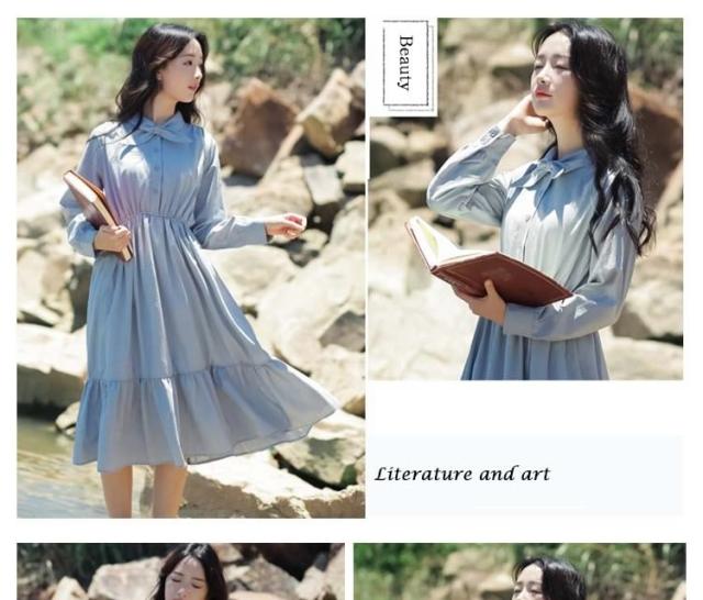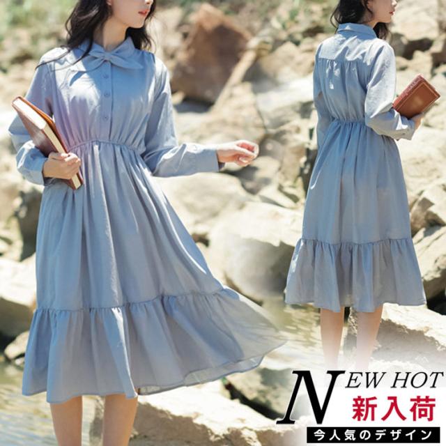 胸元リボンのsweetデザインワンピース ワンピース ワンピ ミディアム丈 長袖 ロングワンピース ロング丈 ハイウエスト 切り替え