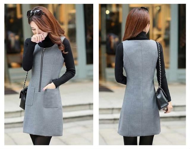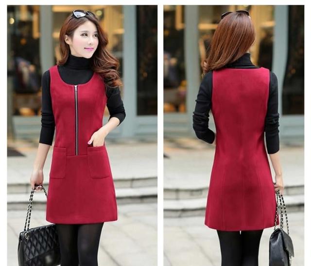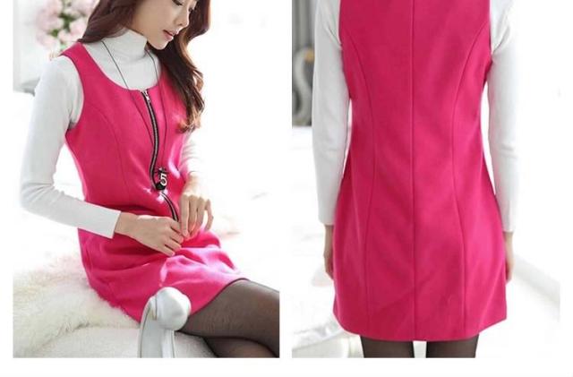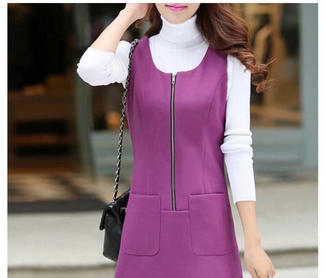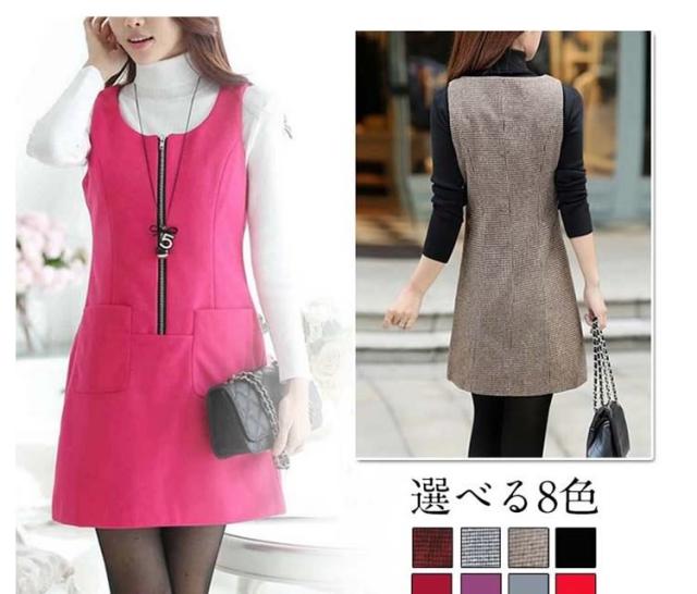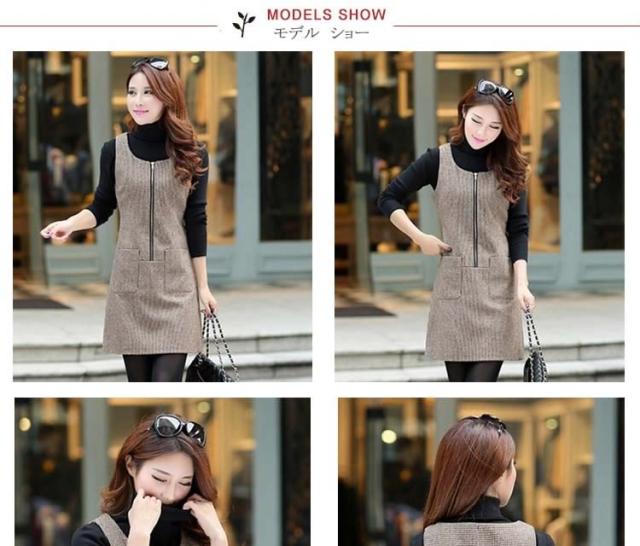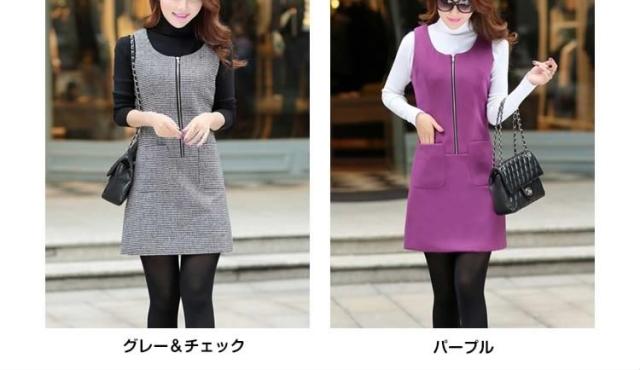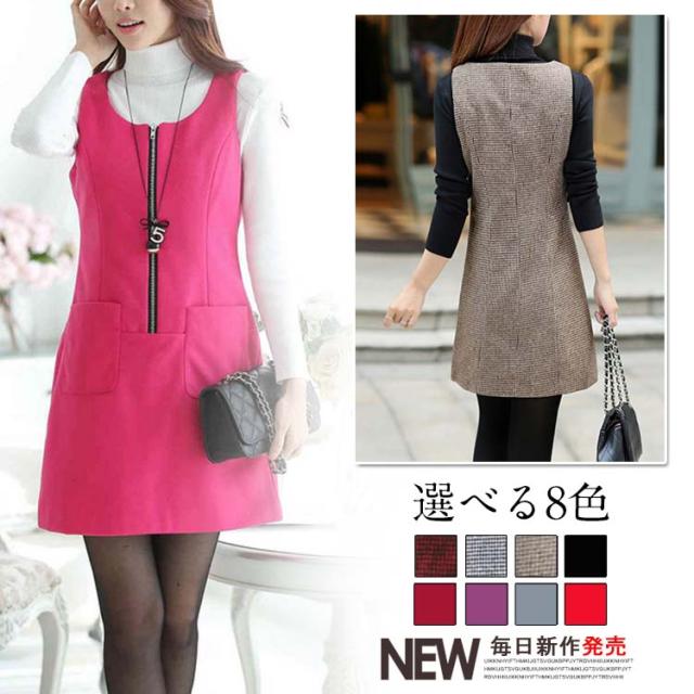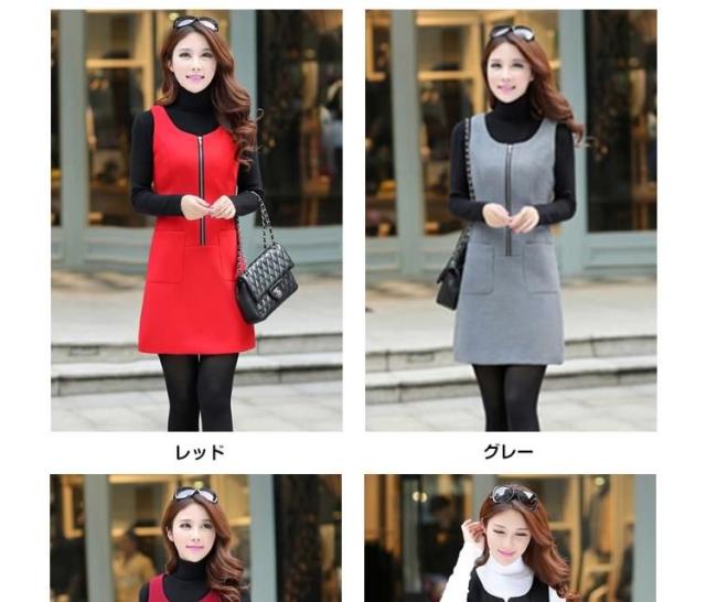 これからの季節に取り入れやすい★フロントジッパー付き ノースリーブ ミニワンピース レディース ワンピース レディース 秋冬 ノー