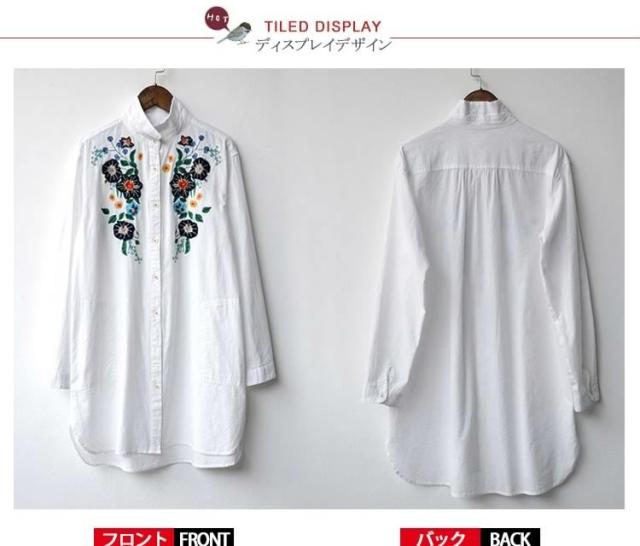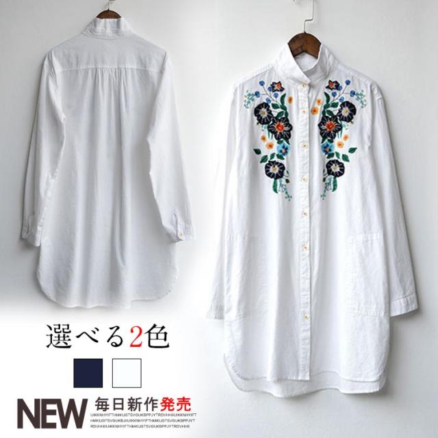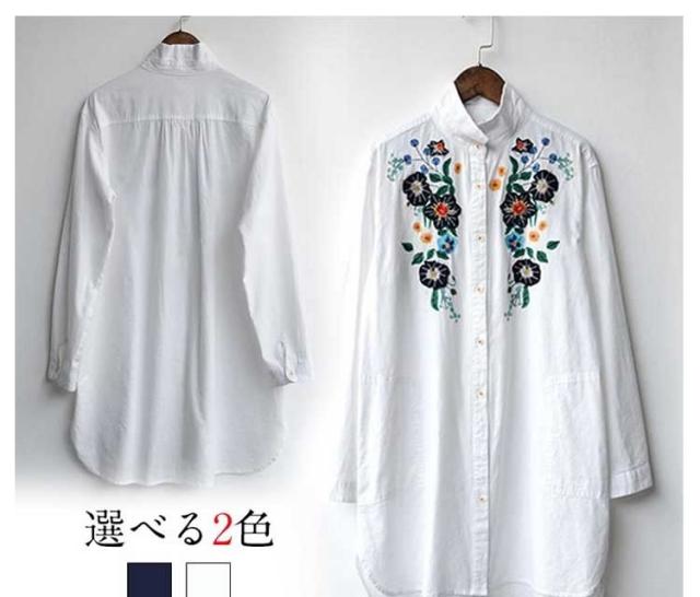 長袖 シャツ 刺繍 シャツ ロング チャイナ風