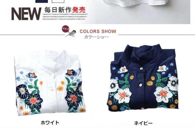 長袖 シャツ 刺繍 シャツ ロング チャイナ風 長袖シャツ トップス レディース