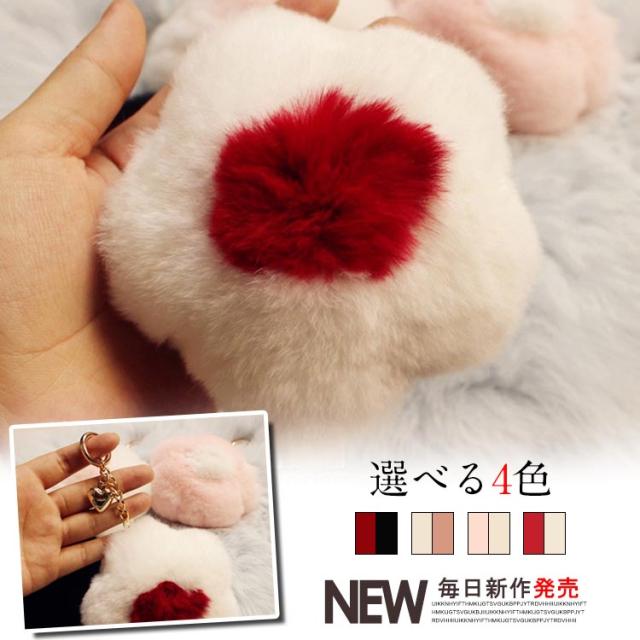 ふわふわ キュート ファー キーホルダー うさぎファー ファーチャーム 小物 チャーム ファー ポンポン ゴージャス感 秋 冬