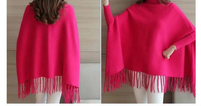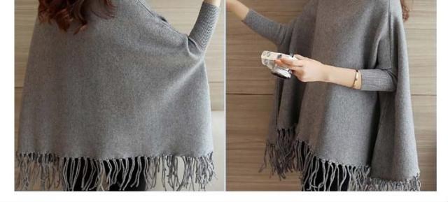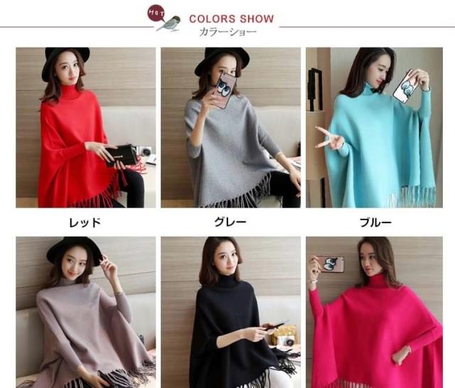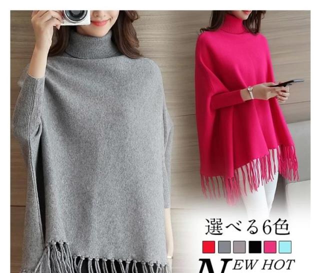 ニットポンチョ ニット フリンジデザイン ポンチョ