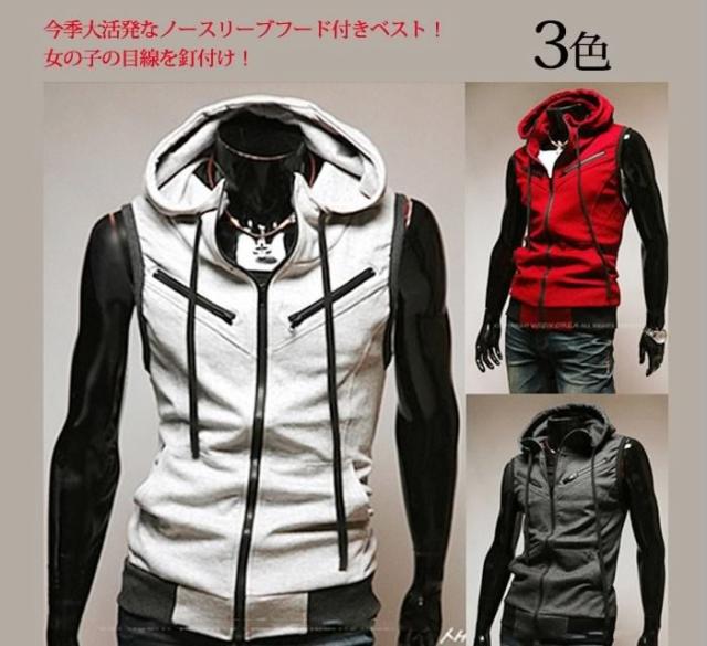 送料無料メンズb系ファッションノースリーブフードベストメンズパーカーダンスHIPHOPストリート系衣装