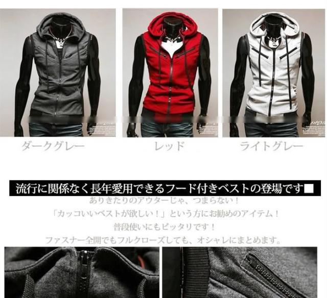 | 素材 | :綿混フード付きカジュアルジップアップコットンベスト メンズ ノースリーブ ベスト★[3色] パーカー フード付ベスト ジップアップ スウェット フード フードベスト ノースリーブ B系 ファッション メンズ ヒップホップ ストリート系 部屋着 スウエット 試価格 |